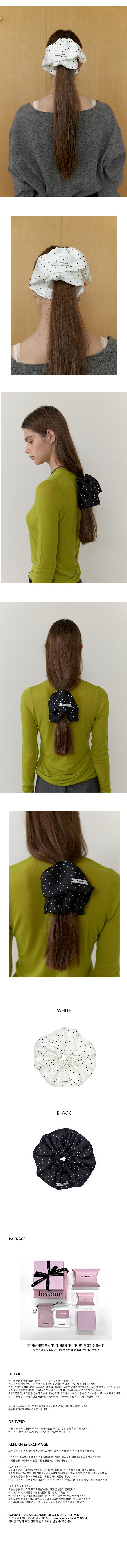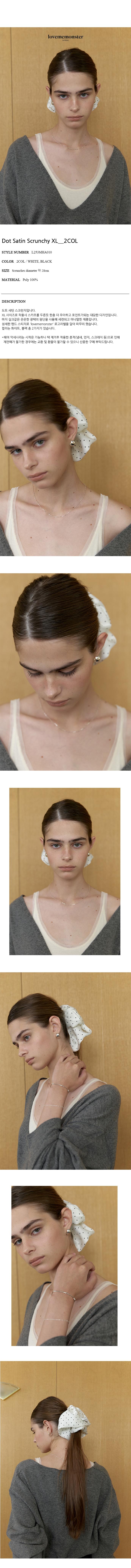 도트 새틴 스크런치입니다. XL 사이즈로 착용시 스카프를 두른듯 한층 더 우아하고 포인트가되는 대담한 디자인입니다. 마치 실크같은 은은한 광택의 원단을 사용해 세련되고 미니멀한 제품입니다. 섬세한 핸드 스티치로 'lovememonster' 로고라벨을 달아 마무리 했습니다. 컬러는 화이트, 블랙 총 2가지가 있습니다. *헤어 악세사리는 시착은 가능하나 택 제거후 착용한 흔적(냄새, 먼지, 스크래치 등)으로 인해 재판매가 불가한 경우에는 교환 및 환불이 불가할 수 있으니 신중한 구매 부탁드립니다.