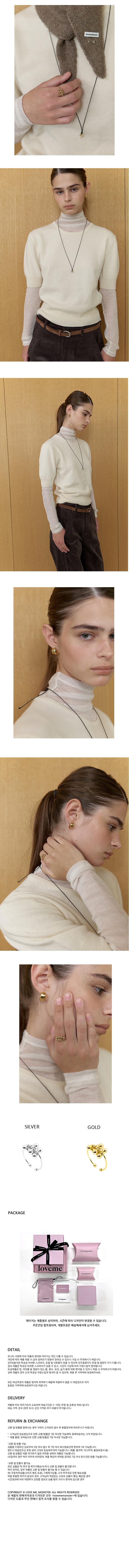 작은 볼 참 장식이 달려있는 반지입니다. 아주 작은 여러 개의 볼이 달랑거리는 유니크한 디자인입니다. 컬러는 실버, 골드 총 2가지가 있습니다. *금속 제품은 특성상 미세한 스크래치가 있을 수 있고, 시간이 지남에 따라 자연스럽게 변색됩니다. 특히 땀, 바닷물 등 염분이 있는 물, 향수, 바디로션 등에 의한 변색이 빠르게 진행될 수 있으니 유의 바랍니다. 착용 후 부드러운 천으로 닦아 지퍼백에 보관하시면 변색을 최대한 방지할 수 있습니다.