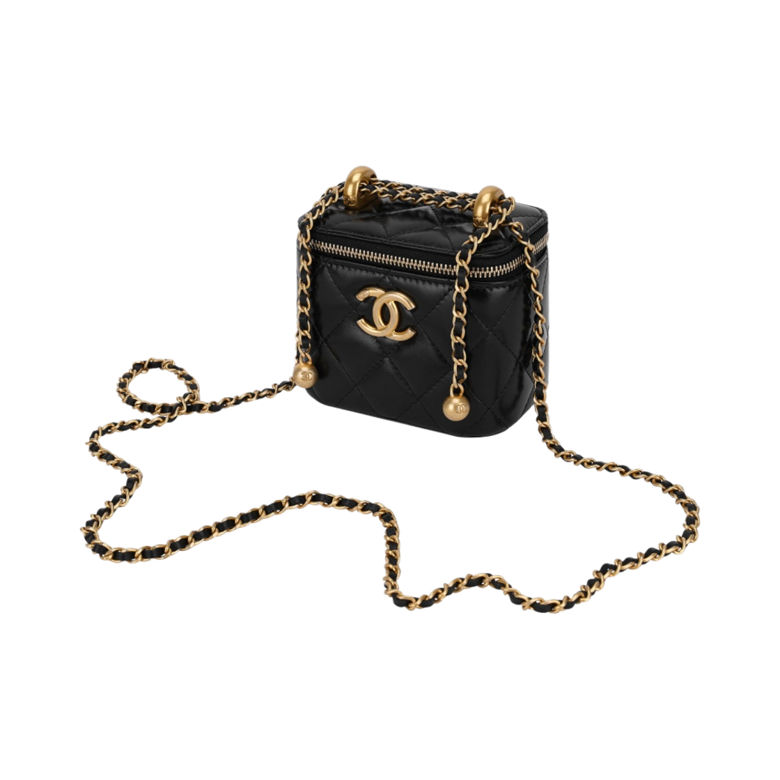샤넬 스몰 체인 코스메틱 케이스 카프스킨 & 골드 메탈 블랙