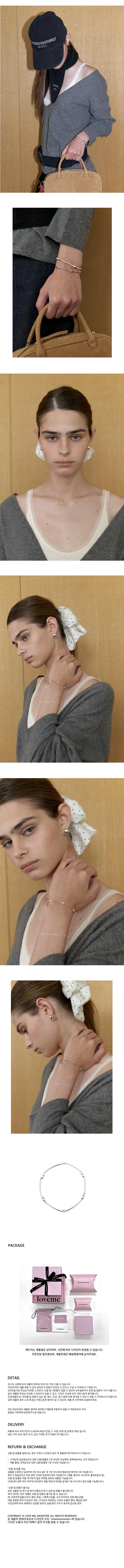 볼 & 바를 믹스하여 디자인한 팔찌입니다. 전반적으로 슬림하고 둥근 라인을 유지하도록 제작하여 마치 뱅글 팔찌와 같은 형태입니다. 2개의 미니 볼을 넣어 디테일을 살렸으며 미니멀한 디자인으로 데일리 아이템입니다. 메탈릭한 소재의 우레탄줄 팔찌로 착용감이 탁월하며 다양한 스타일에 포인트를 더해줍니다. 01_15.5cm, 02_18cm 총 2가지 사이즈가 있습니다. *금속 제품은 특성상 미세한 스크래치가 있을 수 있고, 시간이 지남에 따라 자연스럽게 변색됩니다. 특히 땀, 바닷물 등 염분이 있는 물, 향수, 바디로션 등에 의해 변색이 빠르게 진행될 수 있으니 유의 바랍니다. 착용 후 부드러운 천으로 닦아 지퍼백에 보관하시면 변색을 최대한 방지할 수 있습니다.