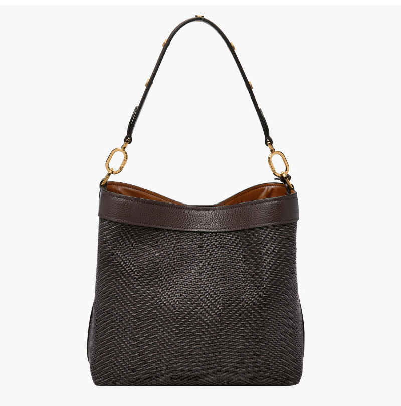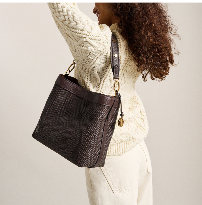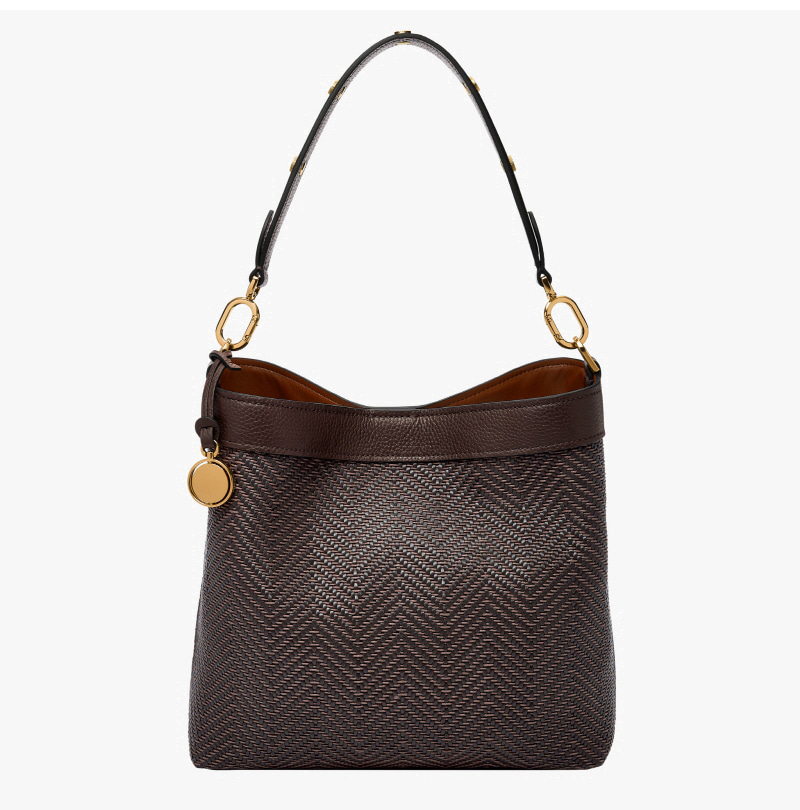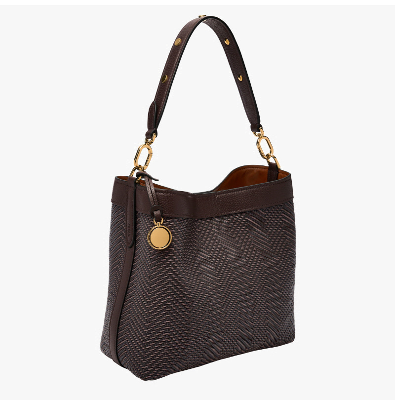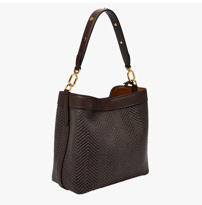 Fossil Jessie Woven Bucket Shoulder Bag Chocolate Woven
