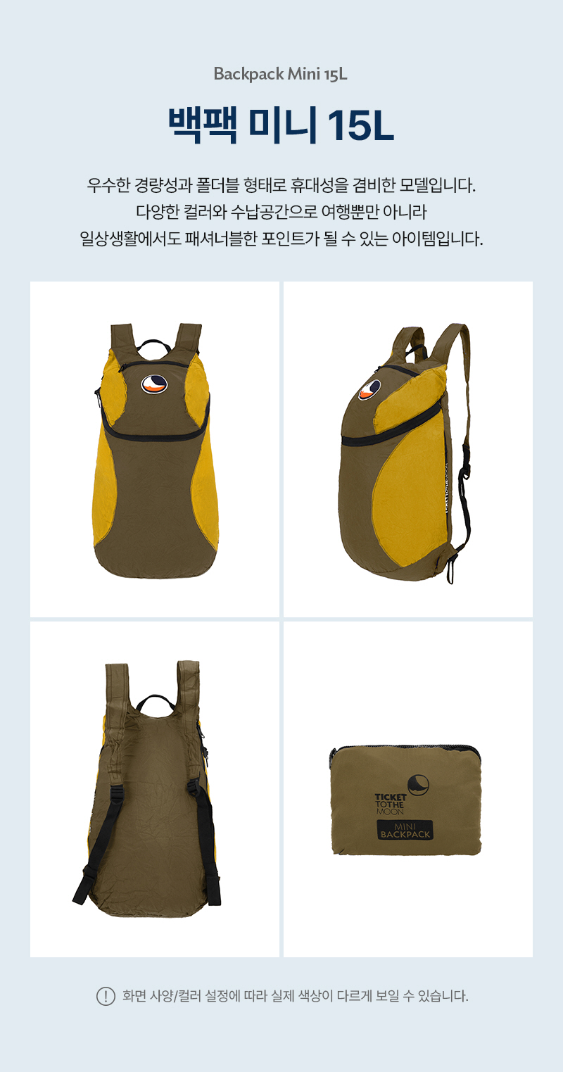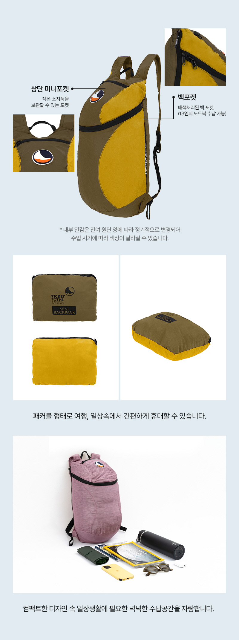 티켓투더문 미니 백팩 15L 브라운 다크 옐로우
