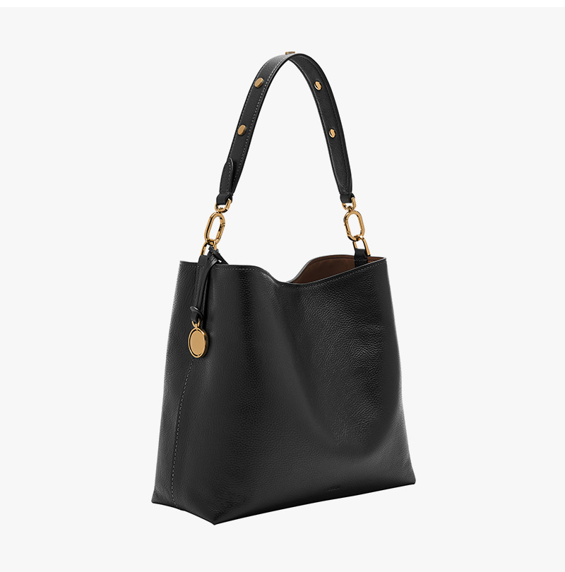 파슬 제시 레더 버킷 숄더백 블랙