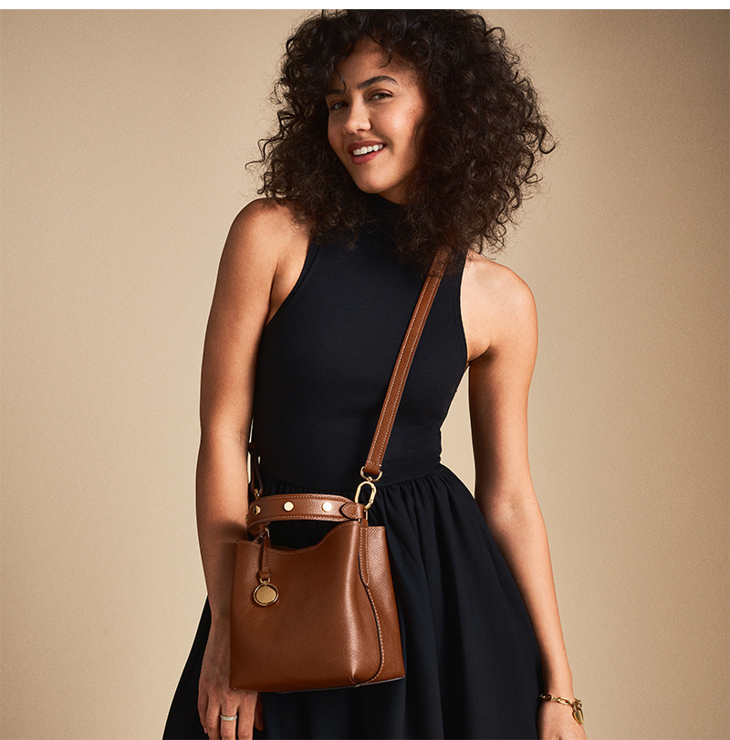 Fossil Jessie Leather Small Bucket Crossbody Bag Medium Brown