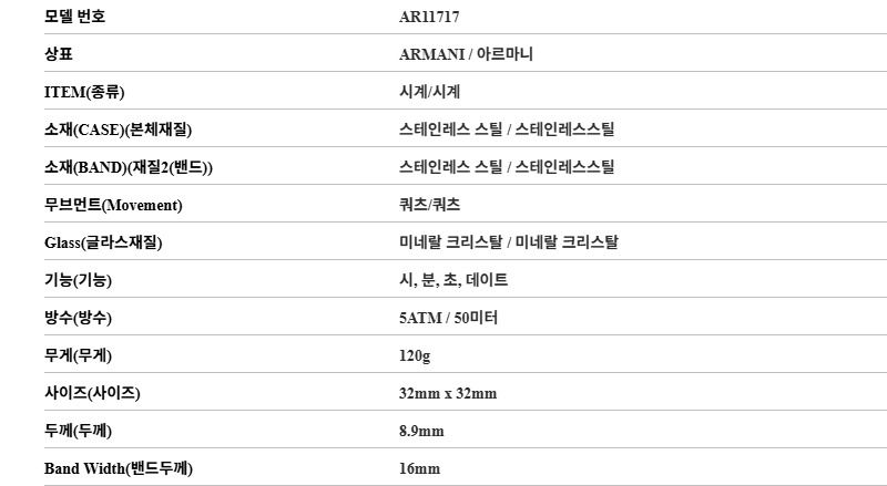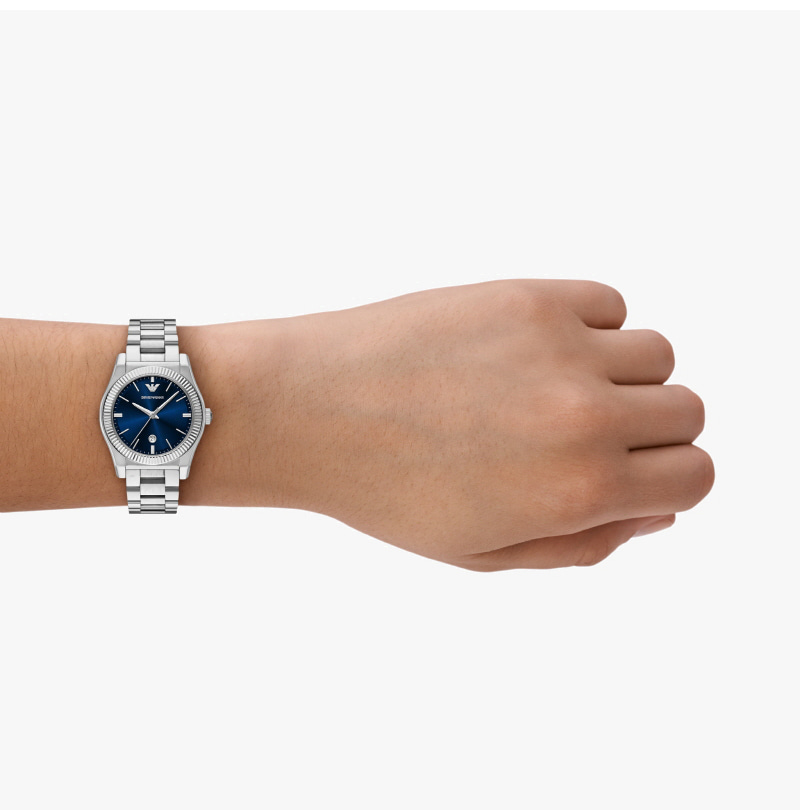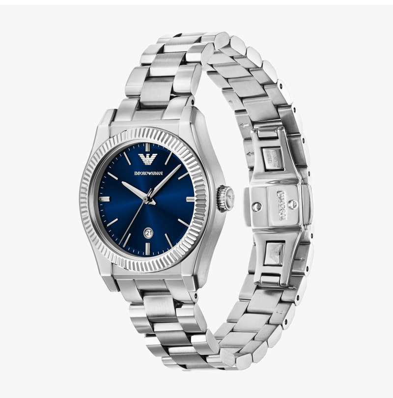 (W) 엠포리오 아르마니 다이노 43mm 라지 메탈 시계 블루 실버