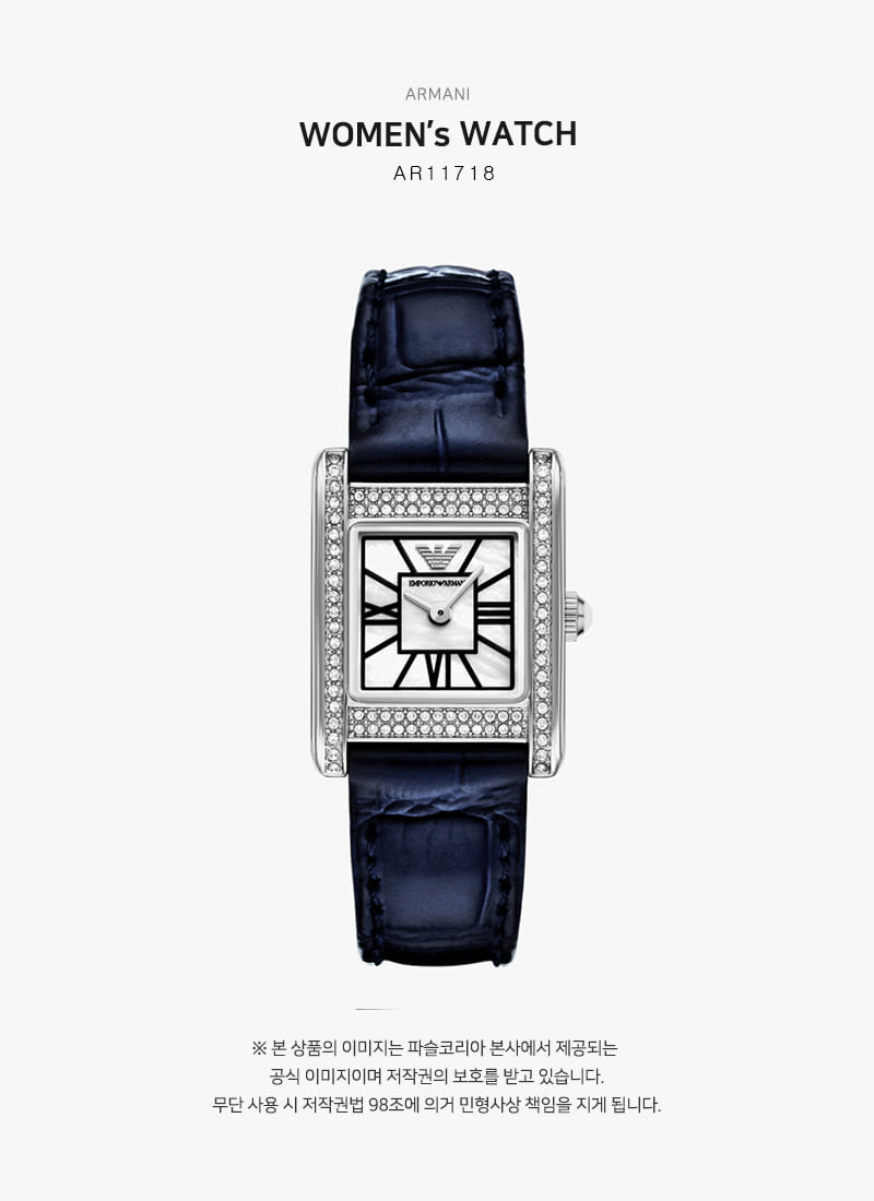 (W) 엠포리오 아르마니 제니 26mm 스퀘어 가죽 시계 마더 오브 펄 블루