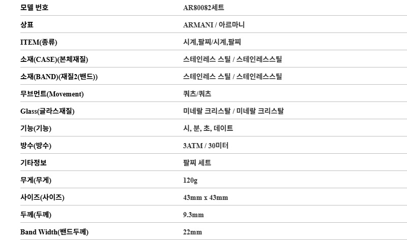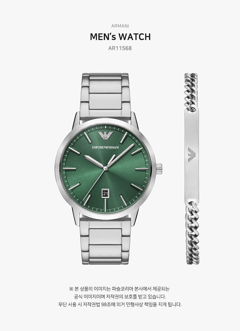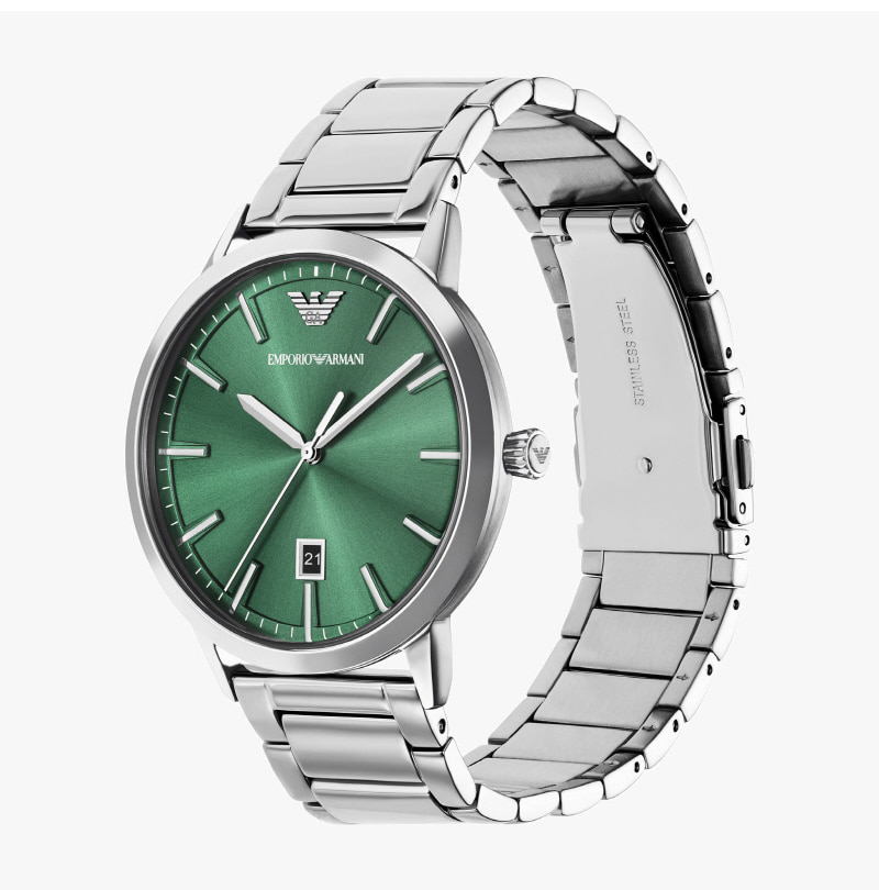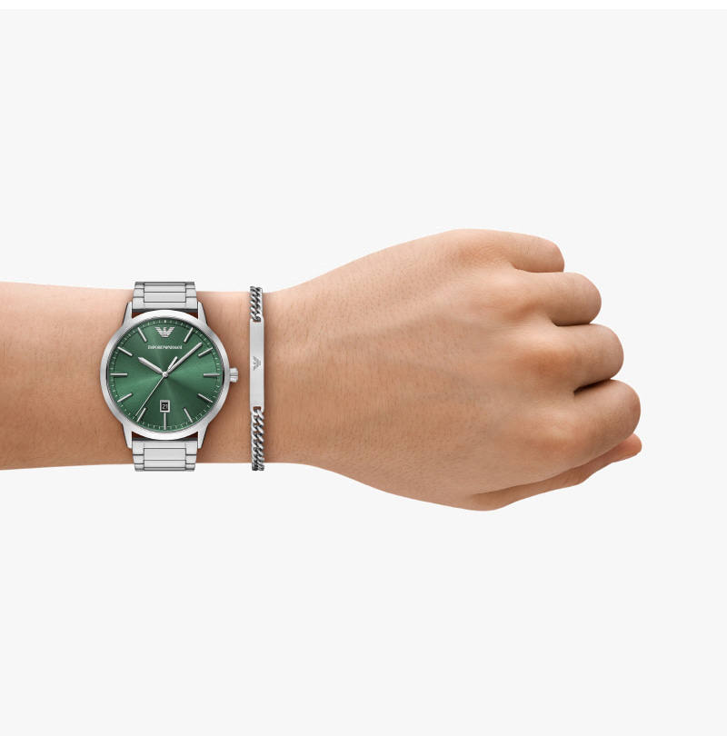 엠포리오 아르마니 43mm 브레이슬릿 세트 메탈 시계 그린 실버