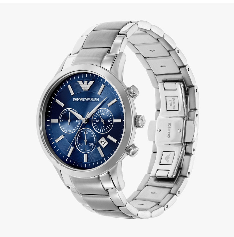 Emporio Armani 43mm Chronograph Bracelet Set Metal Watch Blue Silver