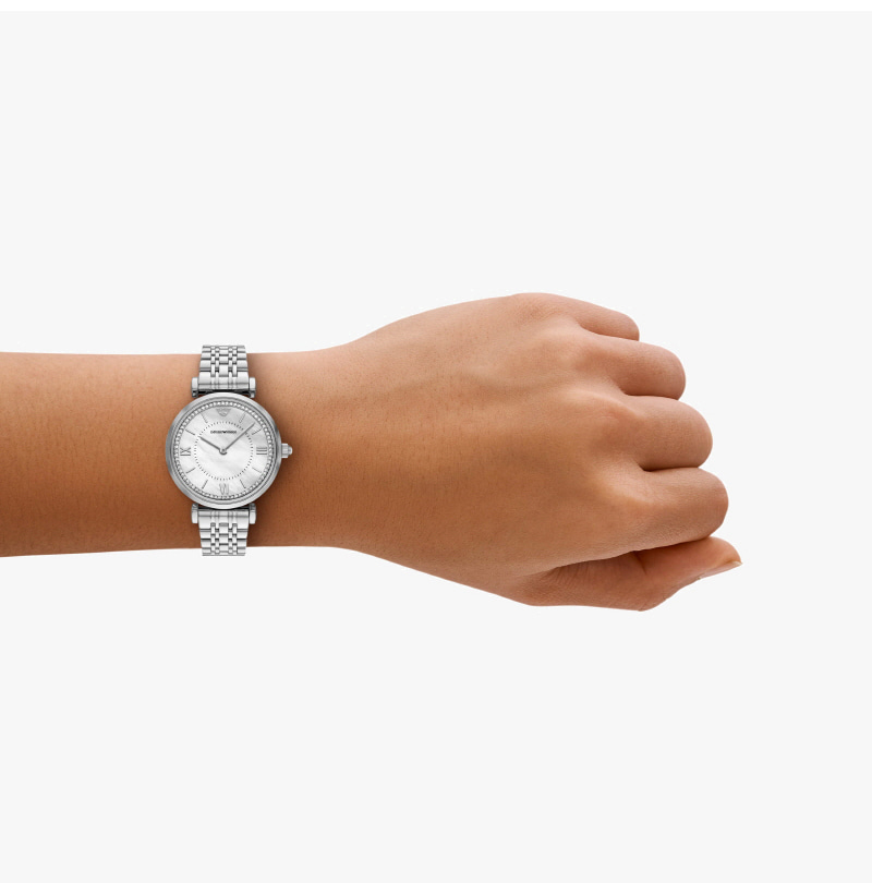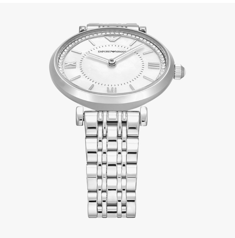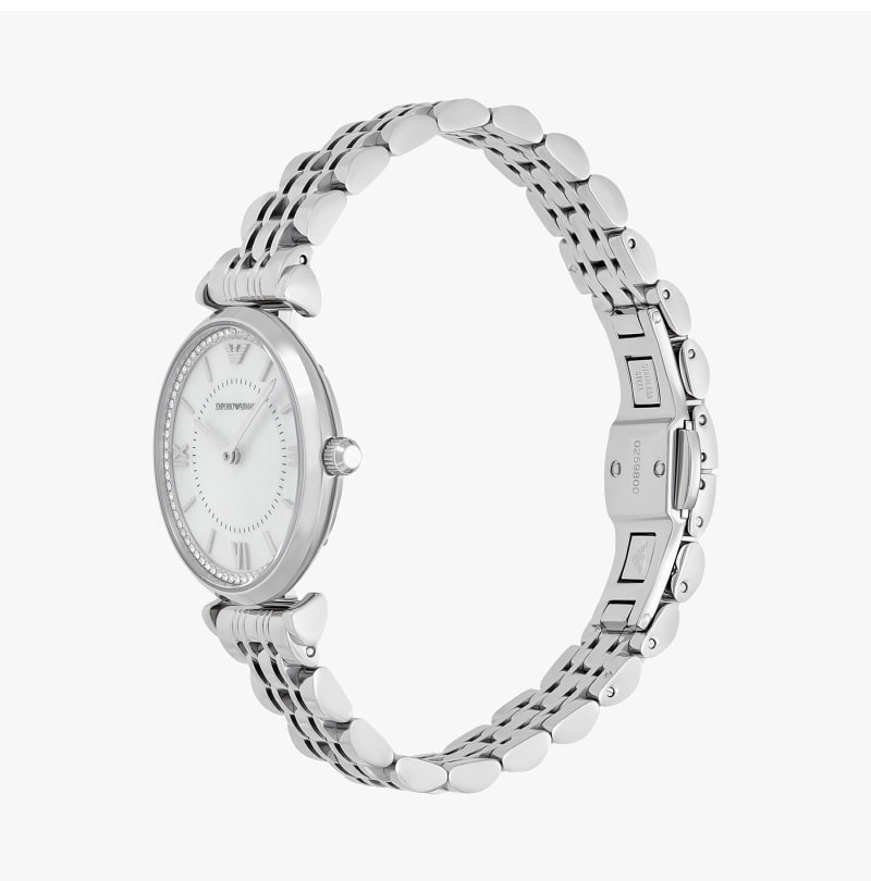 (W) Emporio Armani Gianni 32mm Metal Watch Mother of Pearl Silver