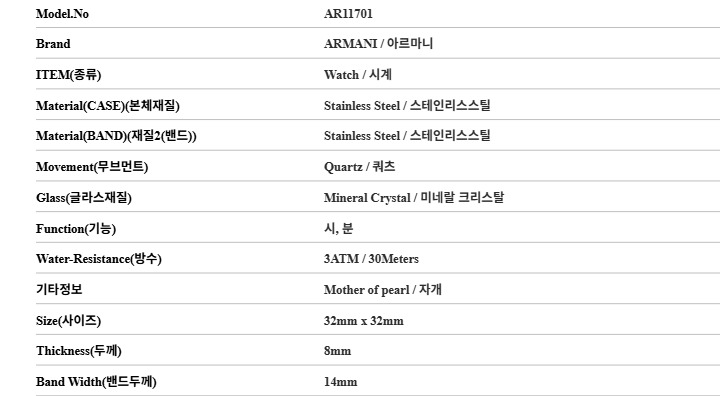 (W) 엠포리오 아르마니 지아니 32mm 메탈 시계 마더 오브 펄 실버