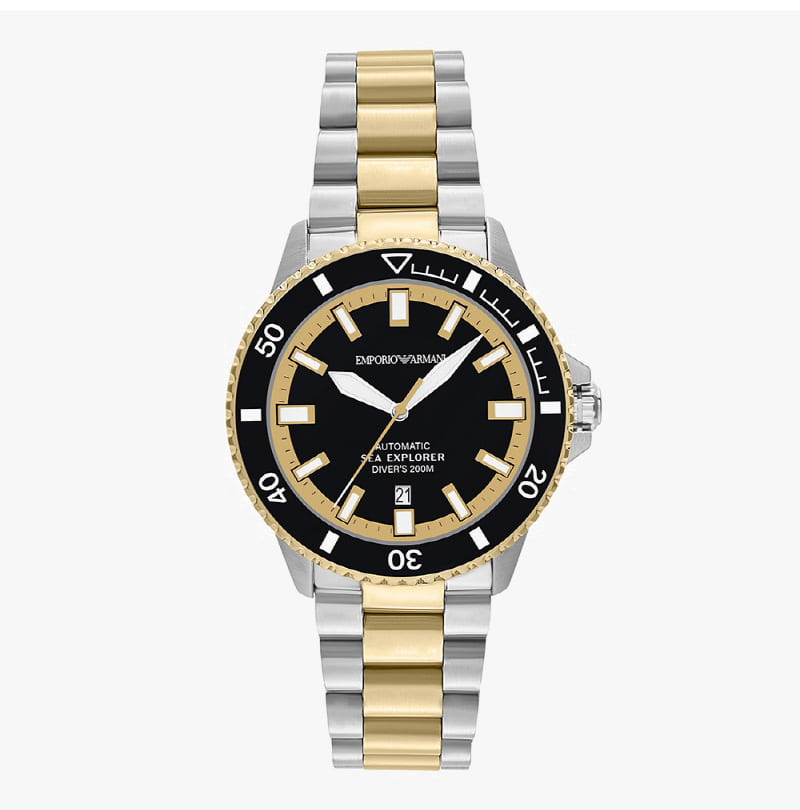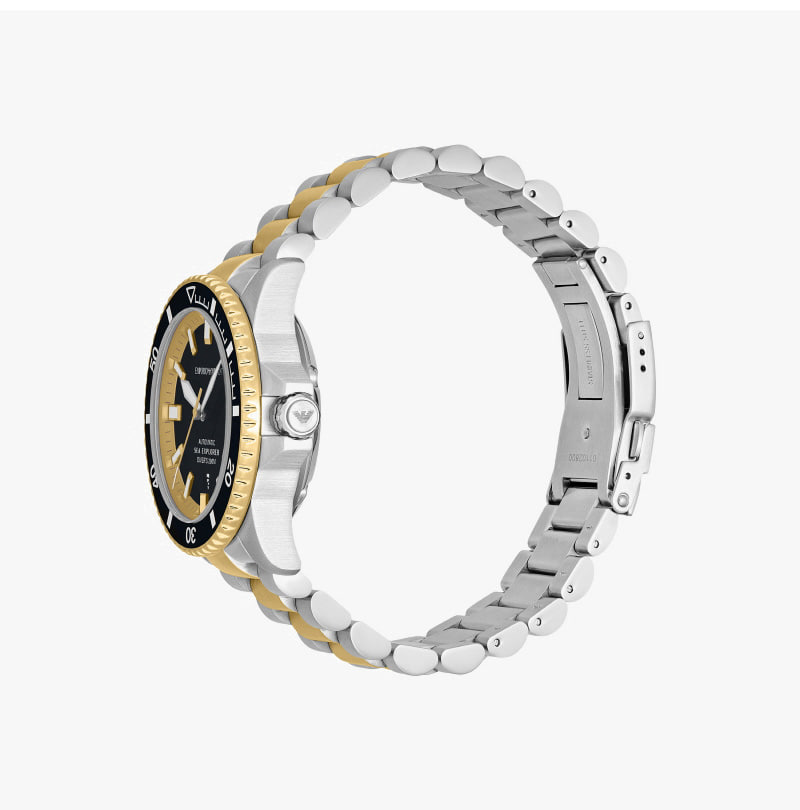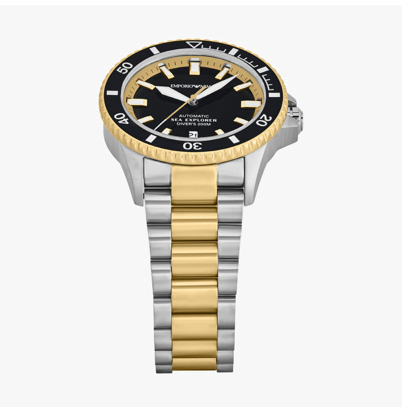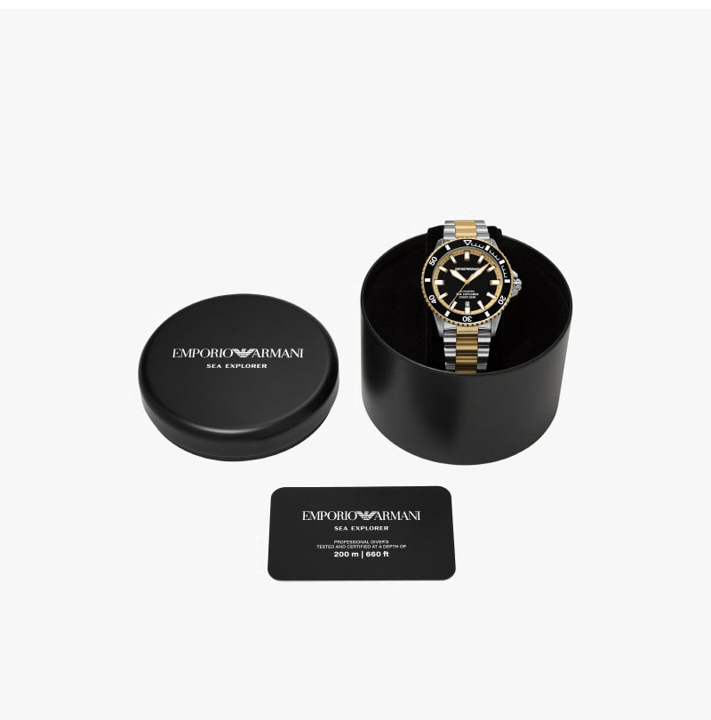 Emporio Armani Sea Exporer 42mm Diver Metal Watch Black Two-Tone
