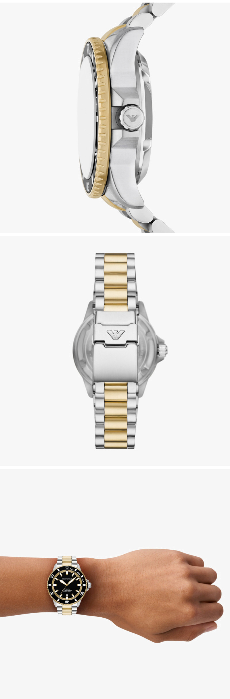 엠포리오 아르마니 씨 익스프로어 42mm 다이버 메탈 시계 블랙 투톤