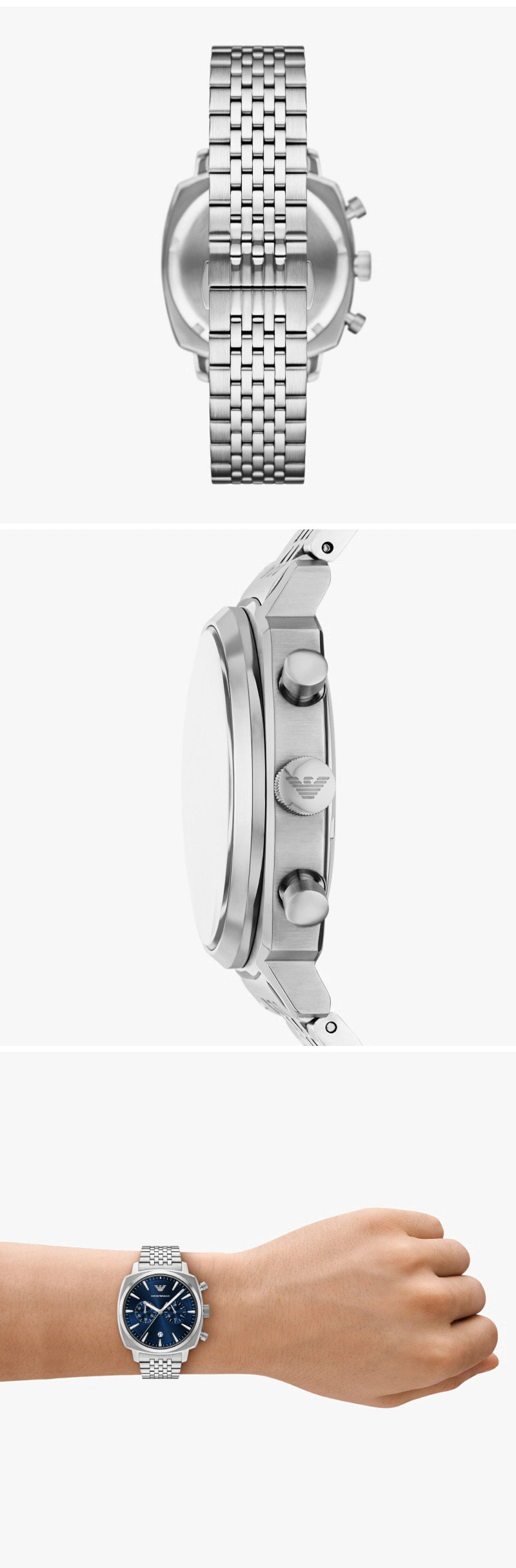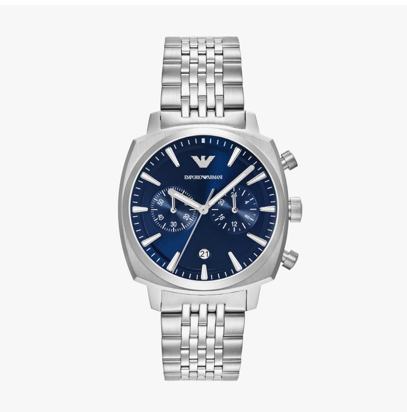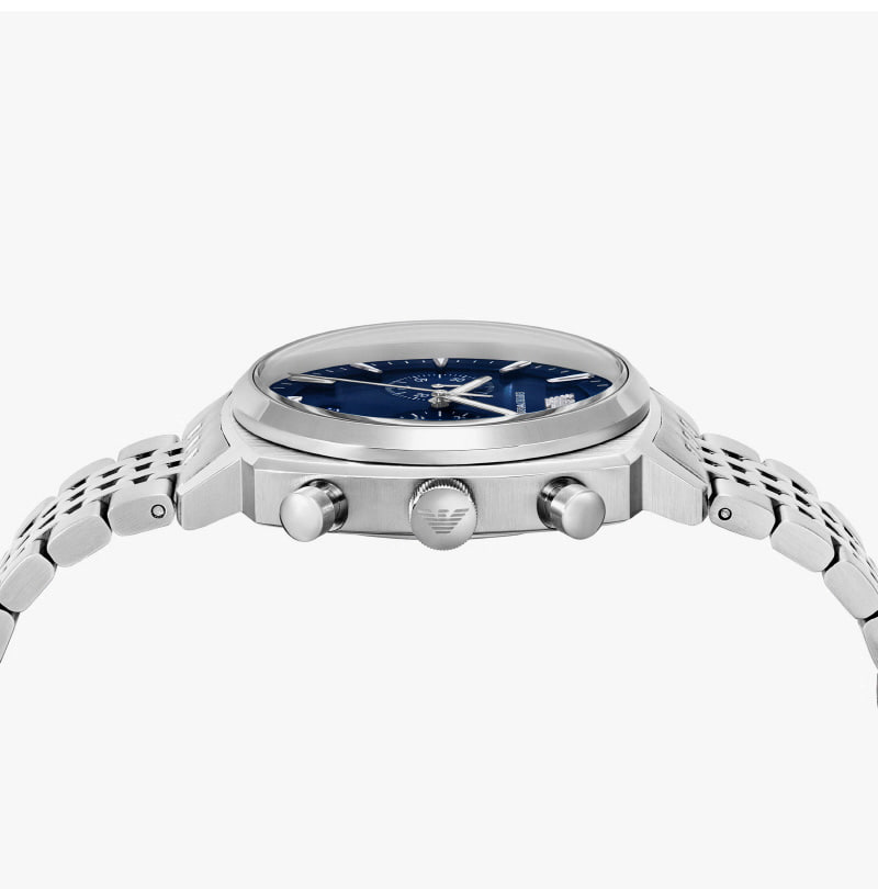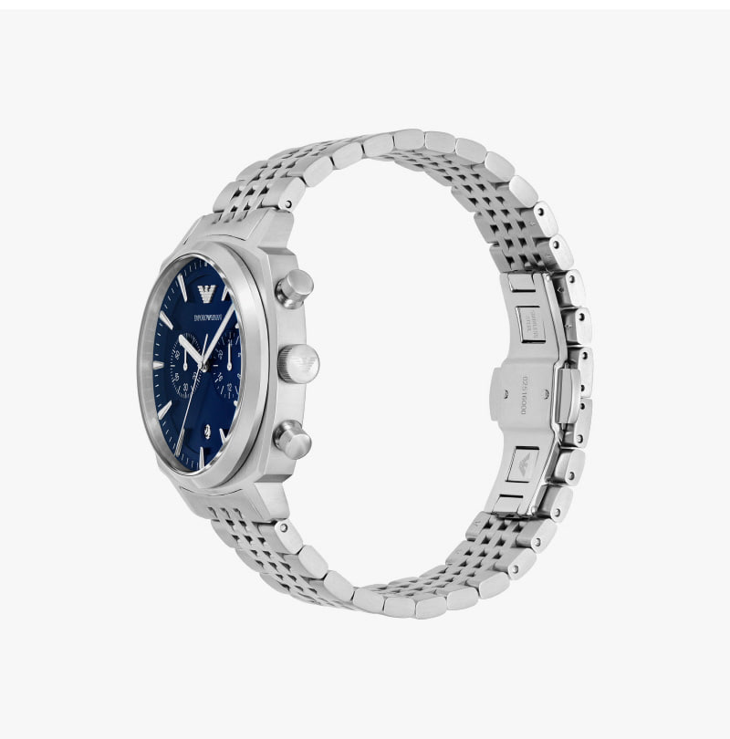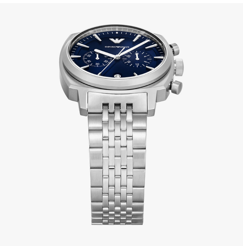 엠포리오 아르마니 카를로 40mm 크로노그래프 메탈 시계 블루 실버