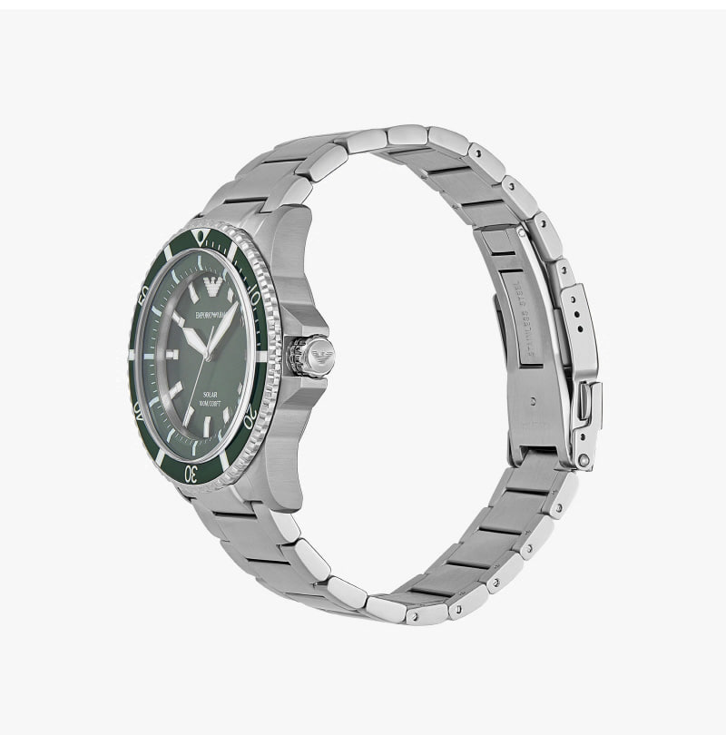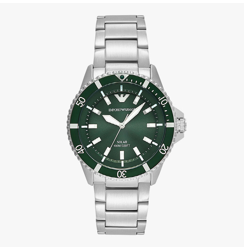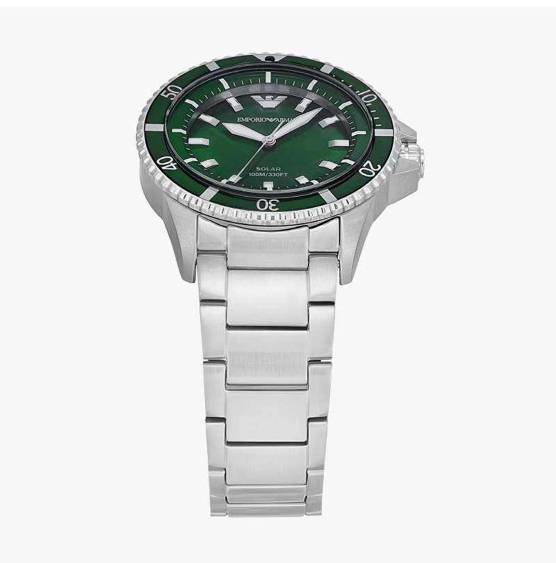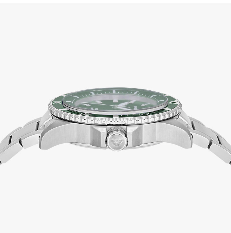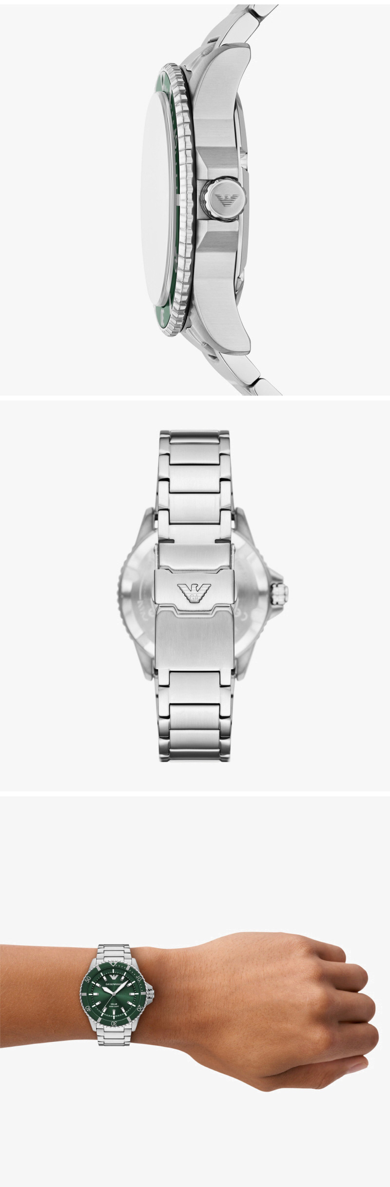 엠포리오 아르마니 월드 익스프로어 42mm 메탈 시계 그린 실버