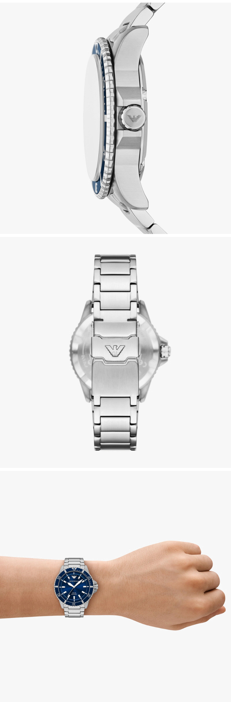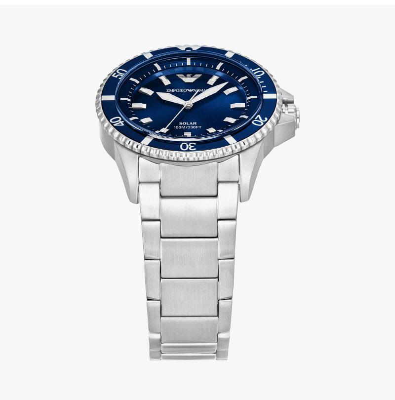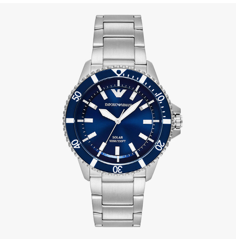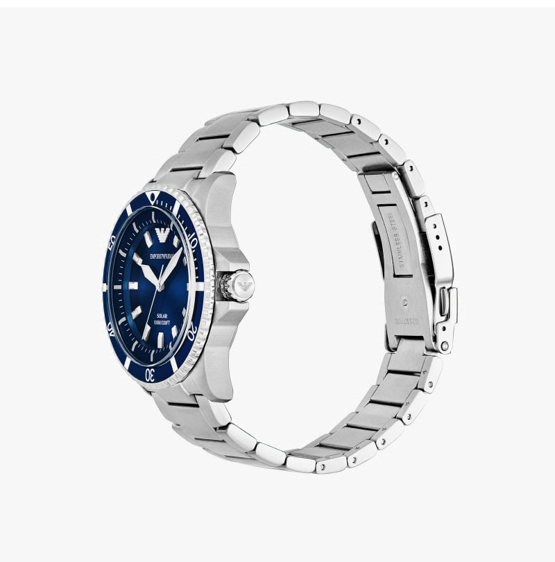 엠포리오 아르마니 월드 익스프로어 42mm 메탈 시계 블루 실버