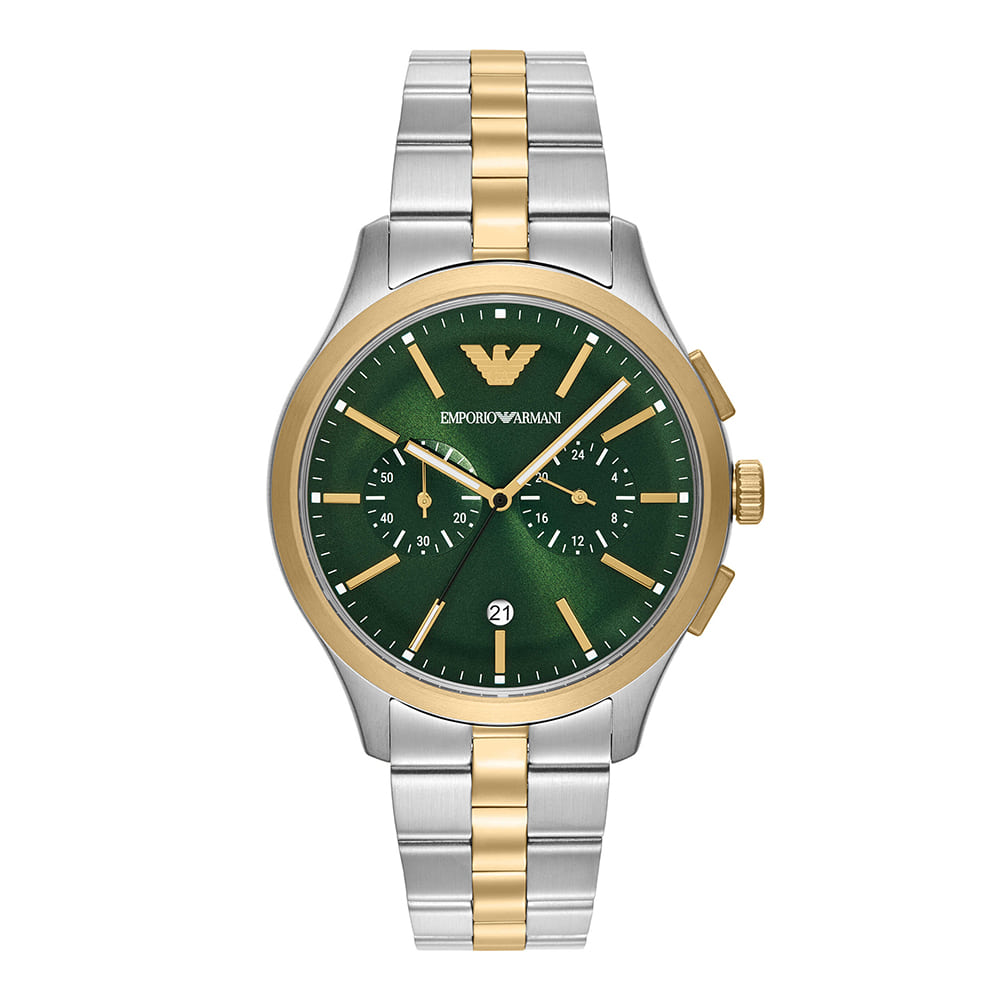 Emporio Armani Dario 42mm Chronograph Metal Watch Green Two-Tone