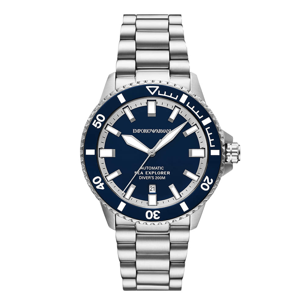 Emporio Armani Sea Exporer 42mm Diver Metal Watch Blue Silver