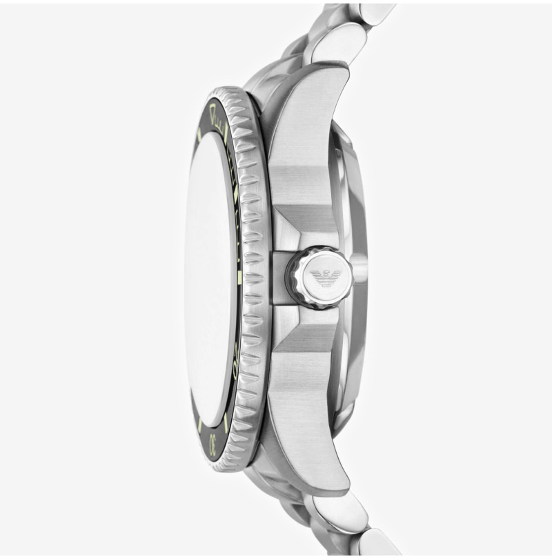 엠포리오 아르마니 씨 익스프로어 42mm 다이버 메탈 시계 블루 실버