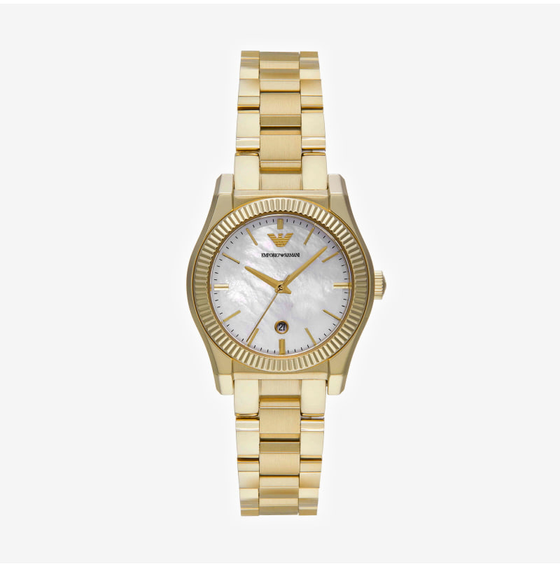 (W) Emporio Armani Federica 32mm Metal Watch Mother of Pearl Gold