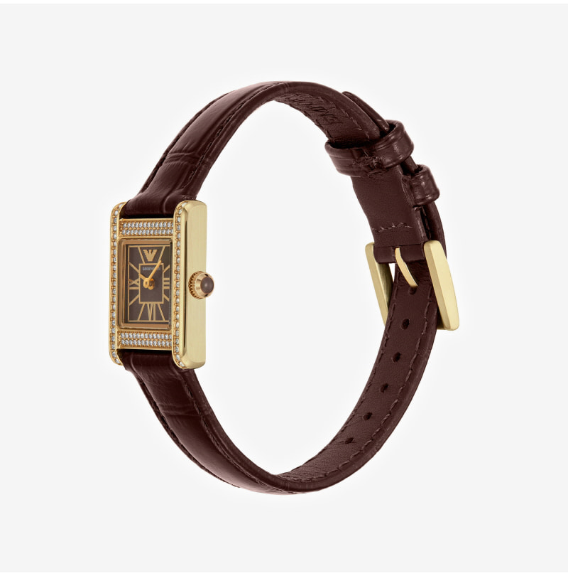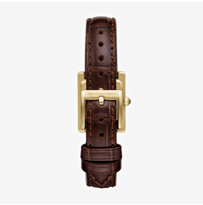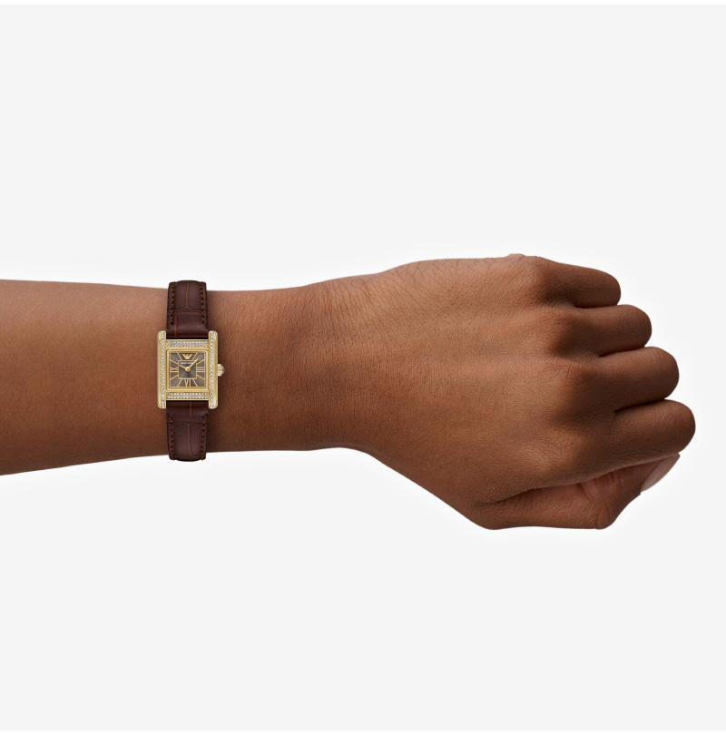 (W) Emporio Armani Genni 26mm Square Leather Watch Brown Brown