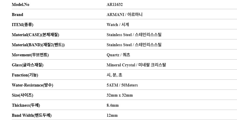 (W) 엠포리오 아르마니 미아 32mm 메탈 시계 실버 실버
