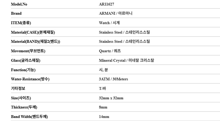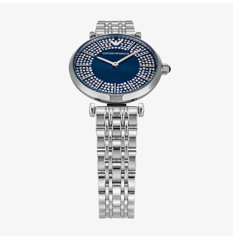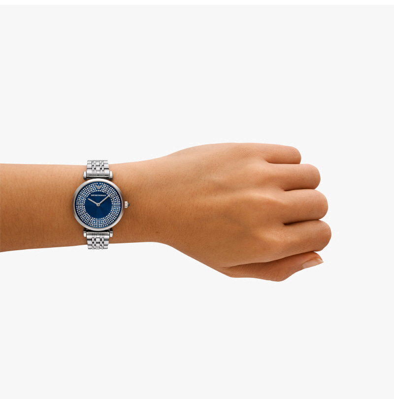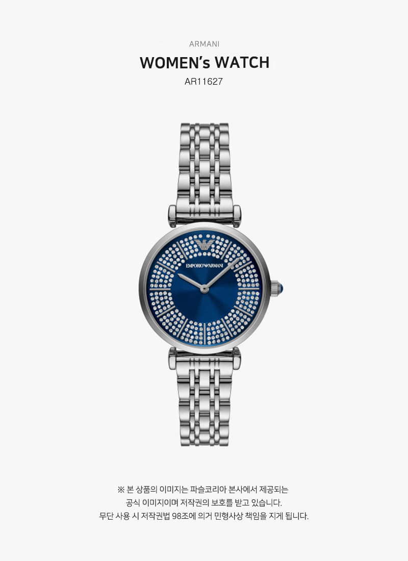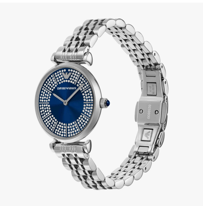 (W) 엠포리오 아르마니 지아니 32mm T-바 메탈 시계 블루 실버