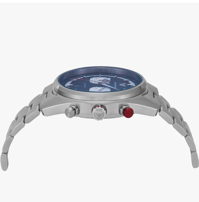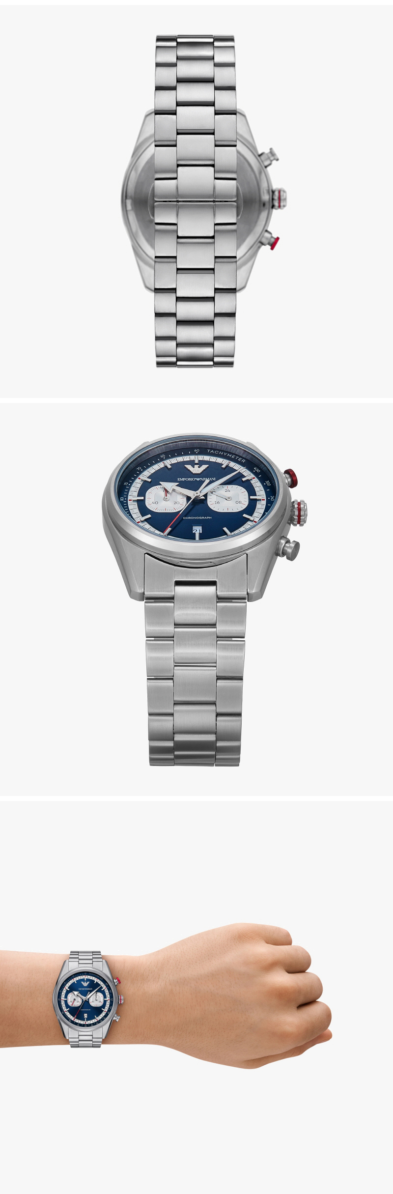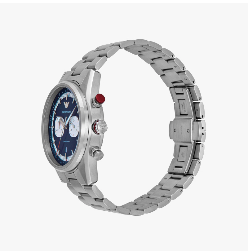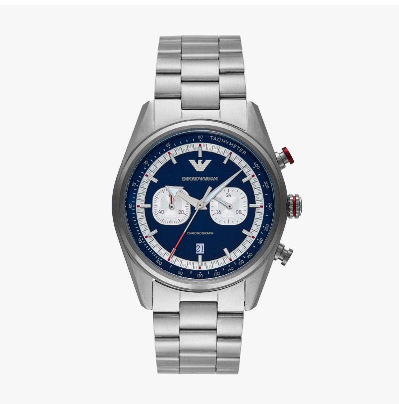 엠포리오 아르마니 레이서 42mm 크로노그래프 메탈 시계 블루 실버