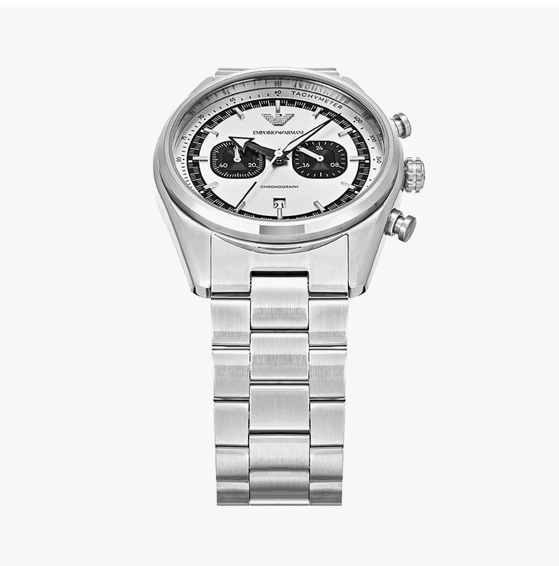엠포리오 아르마니 레이서 42mm 크로노그래프 메탈 시계 투톤 실버