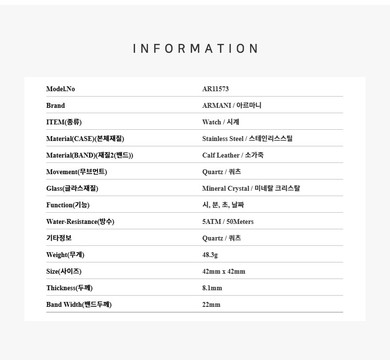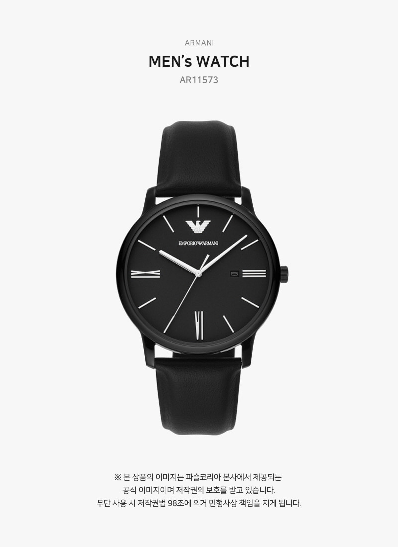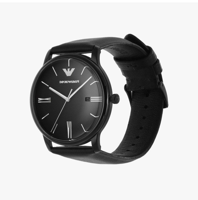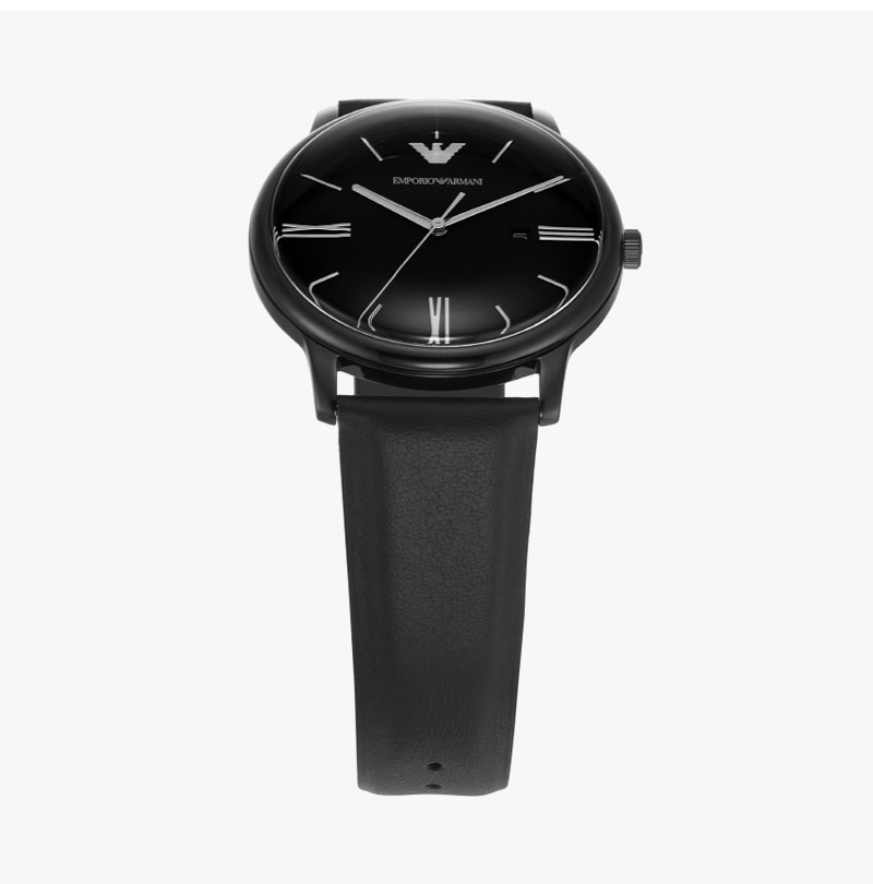 엠포리오 아르마니 미니멀리스트 42mm 가죽 시계 블랙 블랙