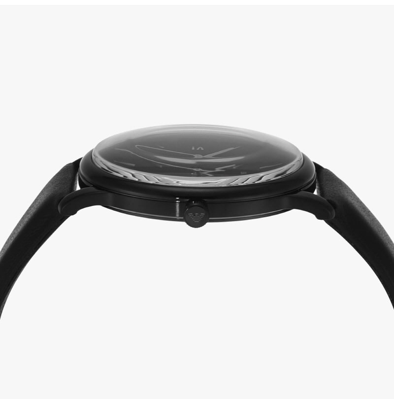 Emporio Armani Minimalist 42mm Leather Watch Black Black