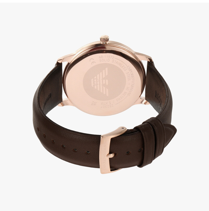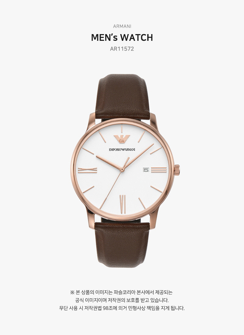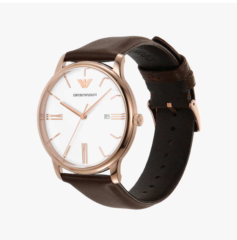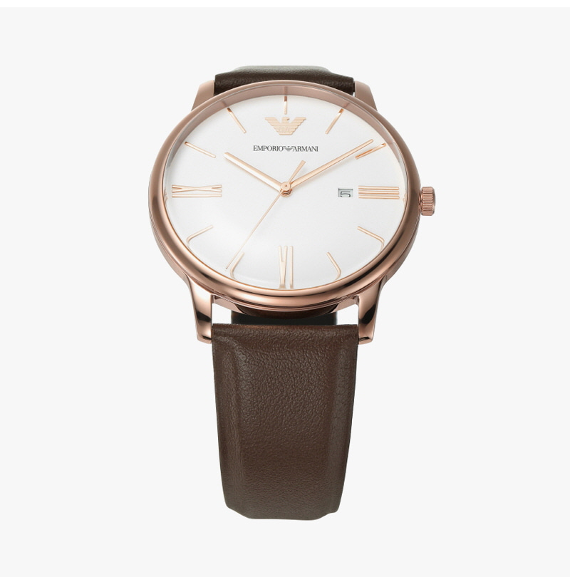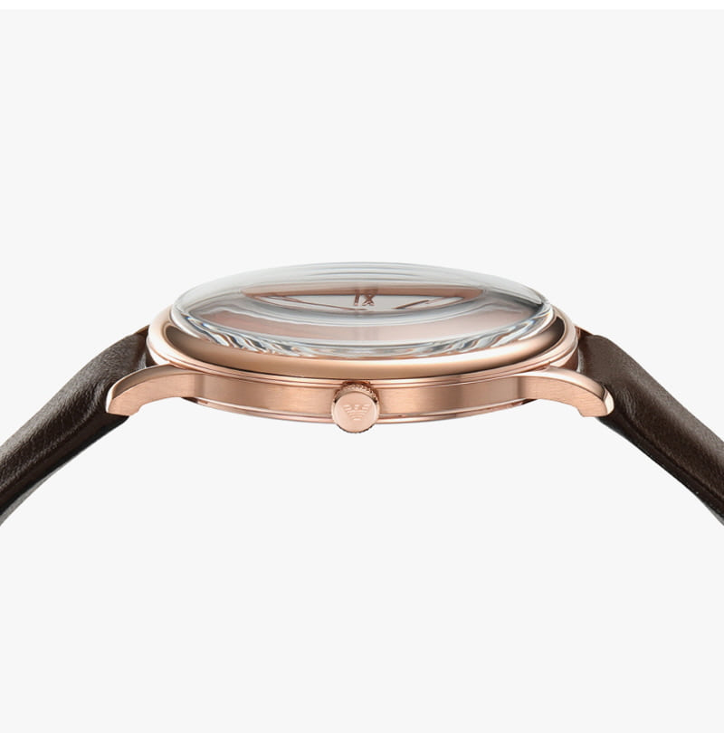 엠포리오 아르마니 미니멀리스트 42mm 가죽 시계 화이트 브라운