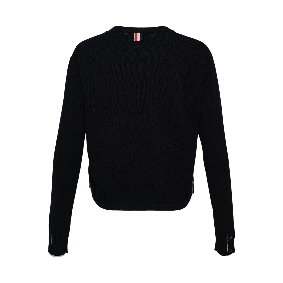 (W) Thom Browne Textured Stitch Crewneck Cardigan Navy