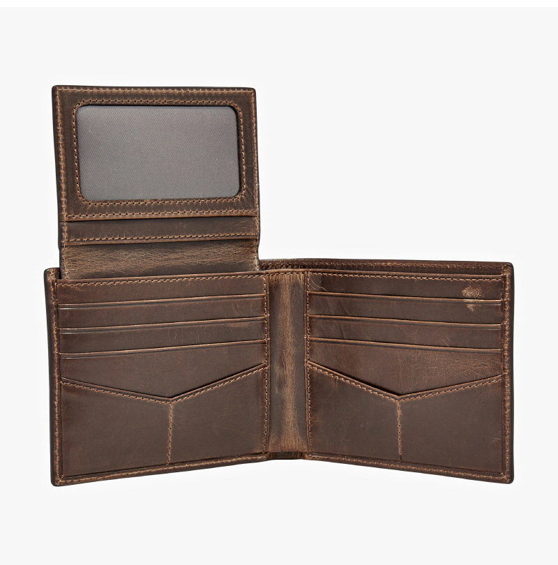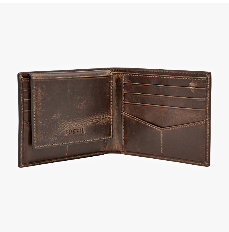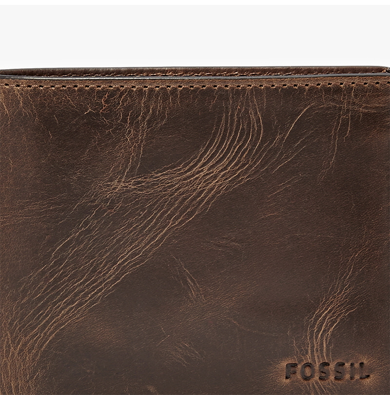 Fossil Derrick Leather RFID Passcase Wallet Dark Brown