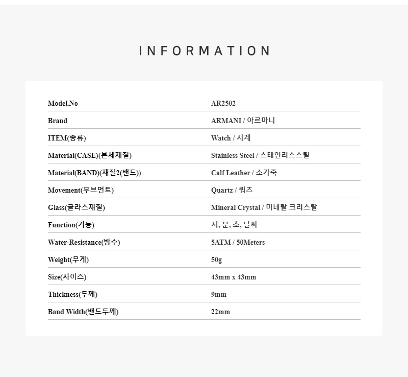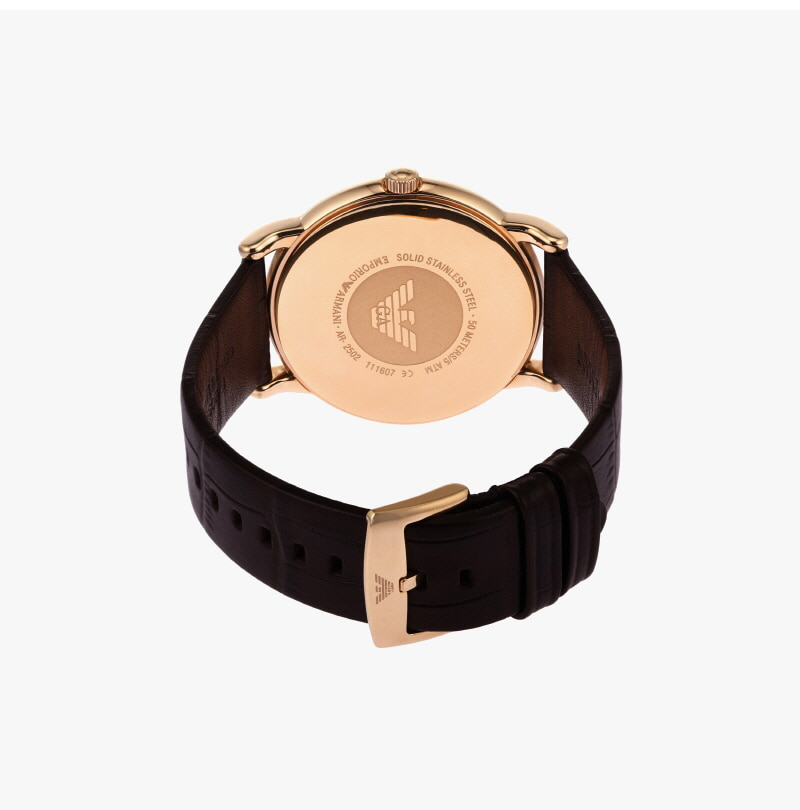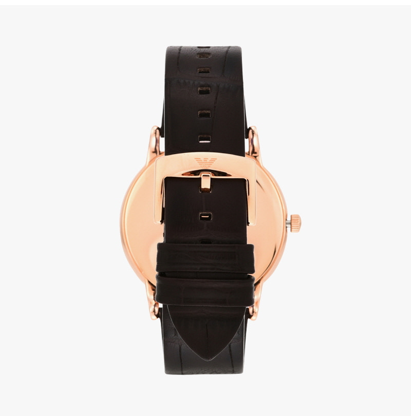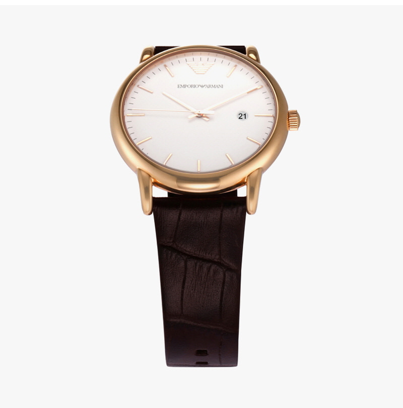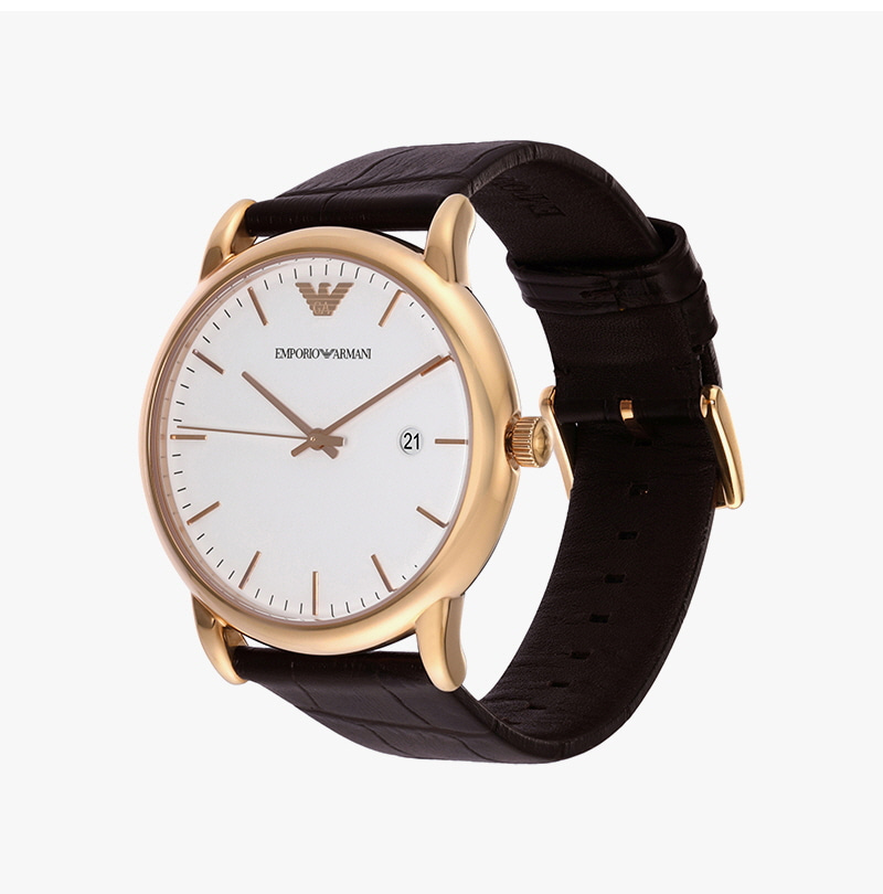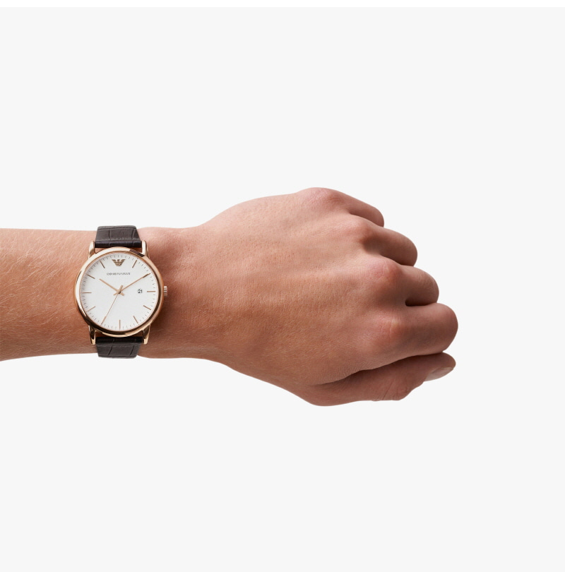 엠포리오 아르마니 루이지 43mm 가죽 시계 화이트 다크 브라운