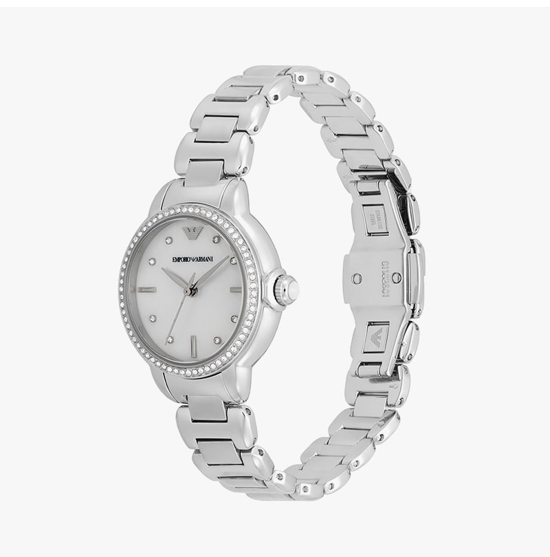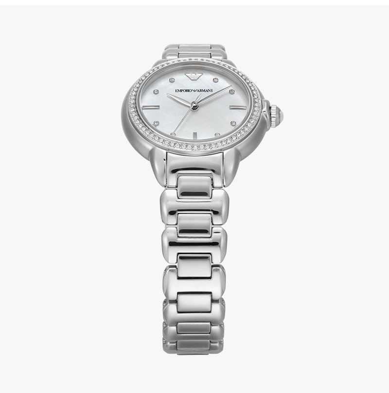 (W) 엠포리오 아르마니 미아 32mm 메탈 시계 마더 오브 펄 실버