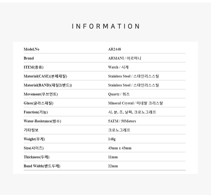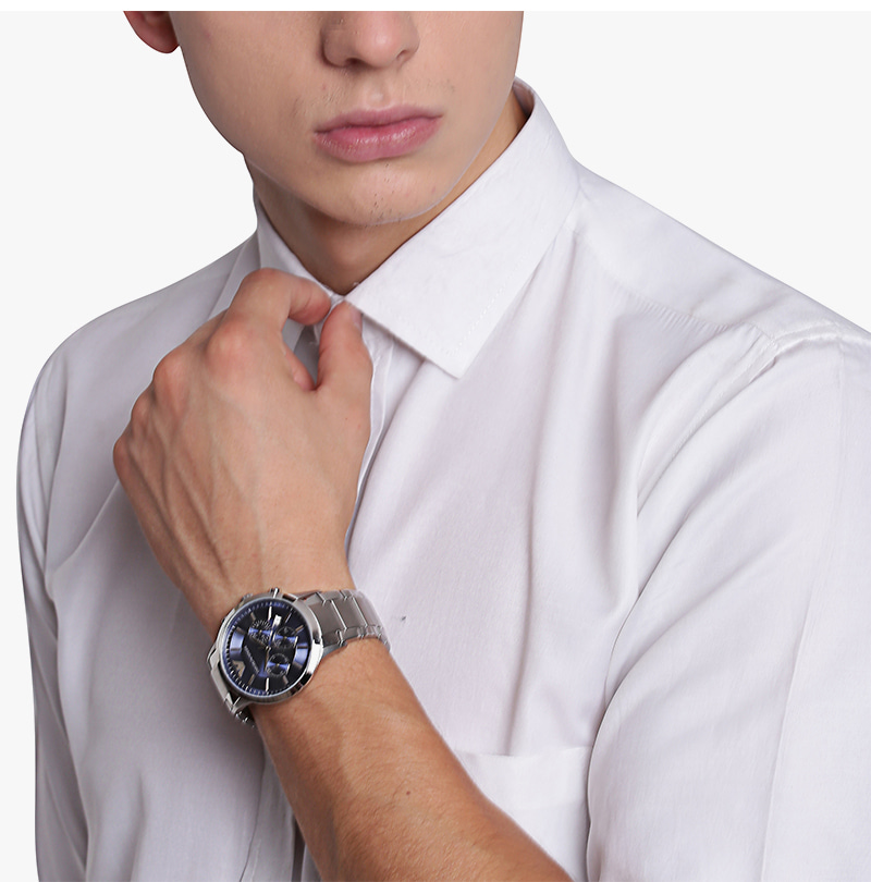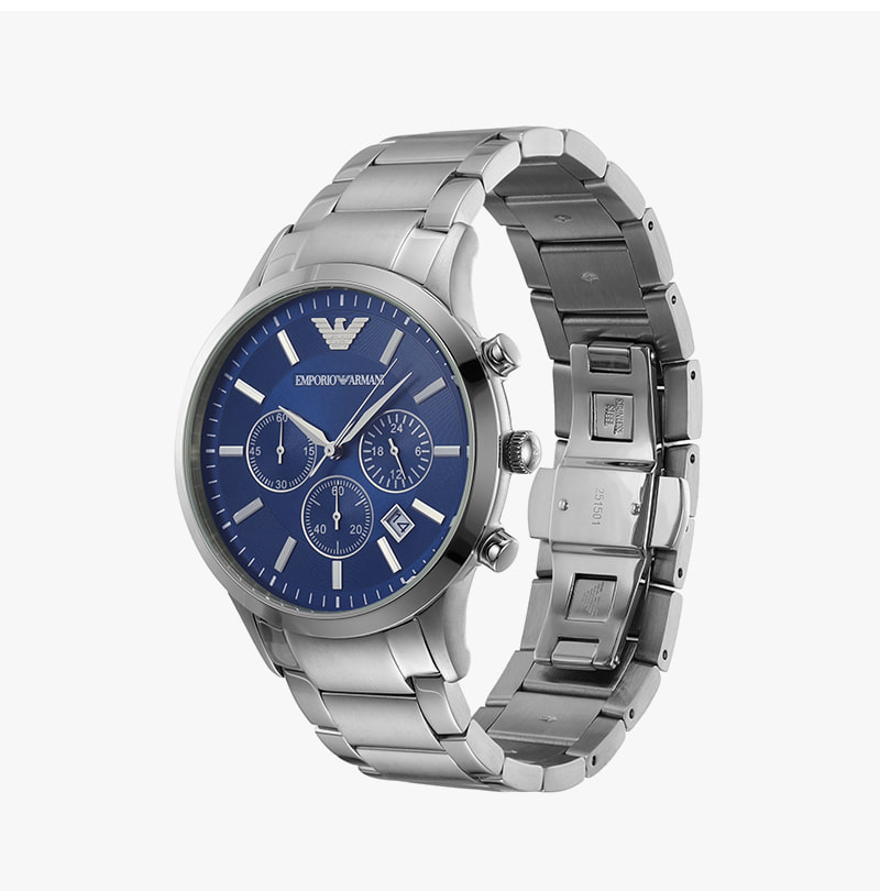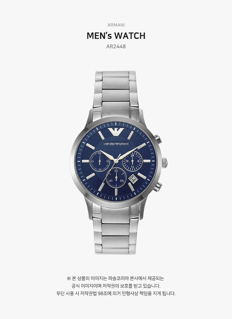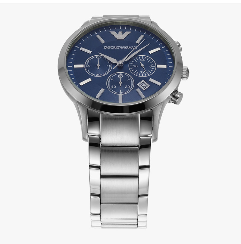 엠포리오 아르마니 레나토 43mm 크로노그래프 메탈 시계 블루 실버