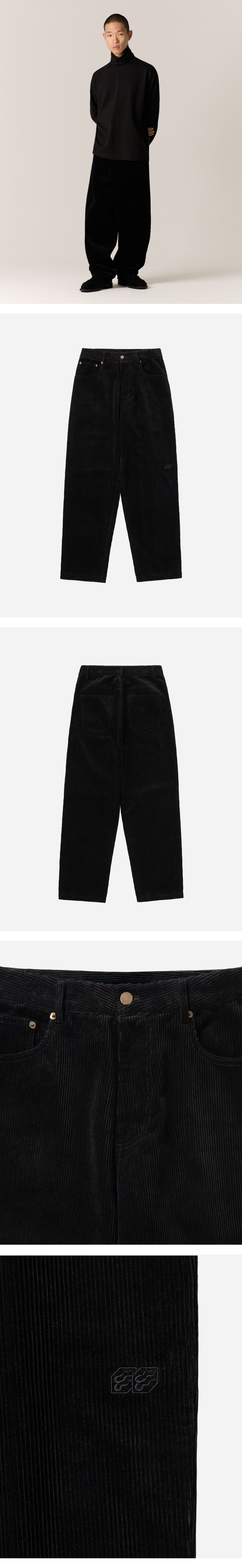 • Relaxed fit • 5-Pocket detail • Back yoke • Artwork embroidery at knee • Bio-washed corduroy fabric • 100% Cotton • Model is wearing size 3 (183cm)