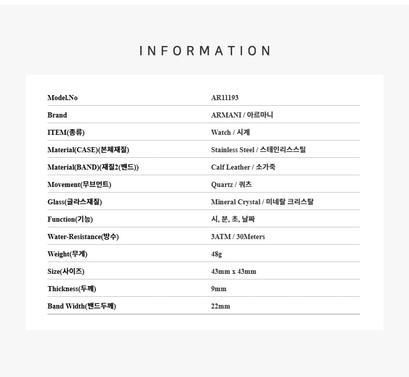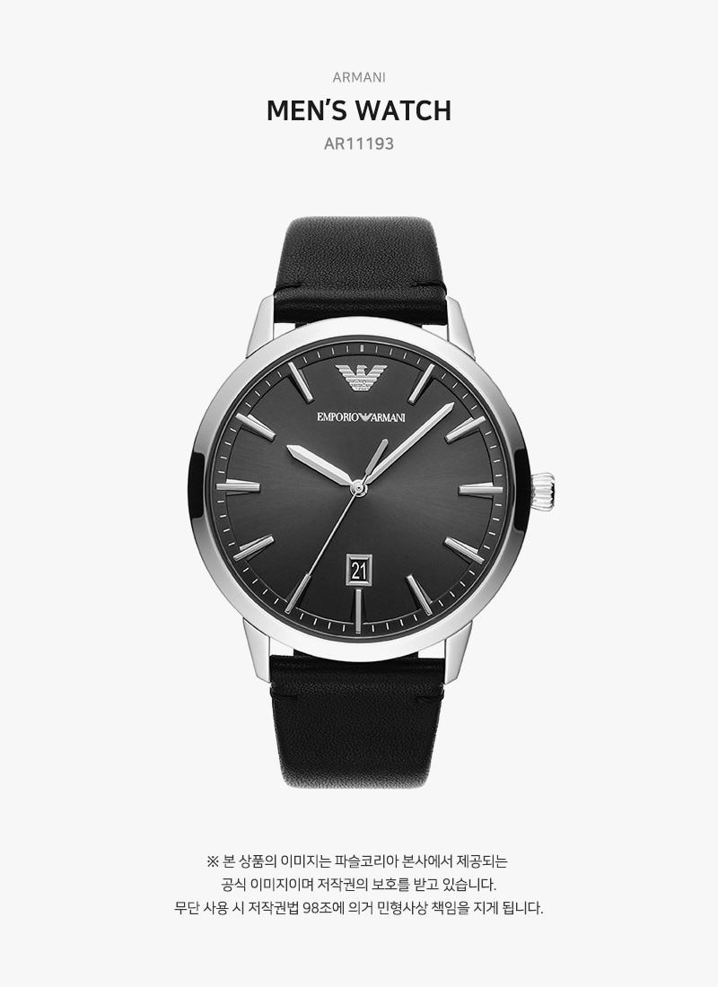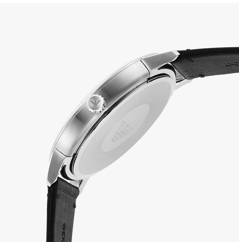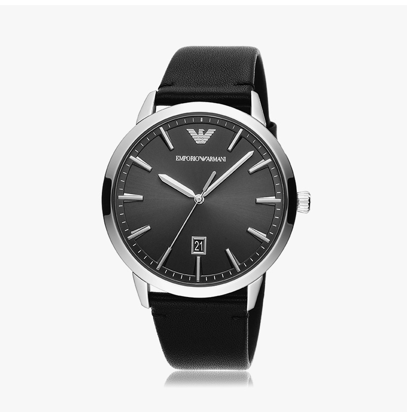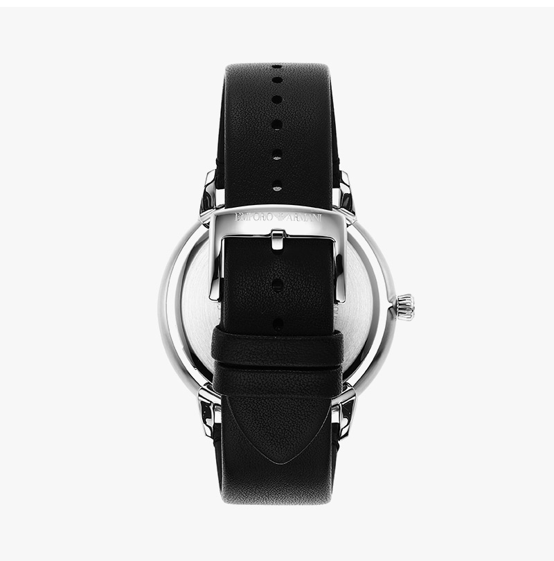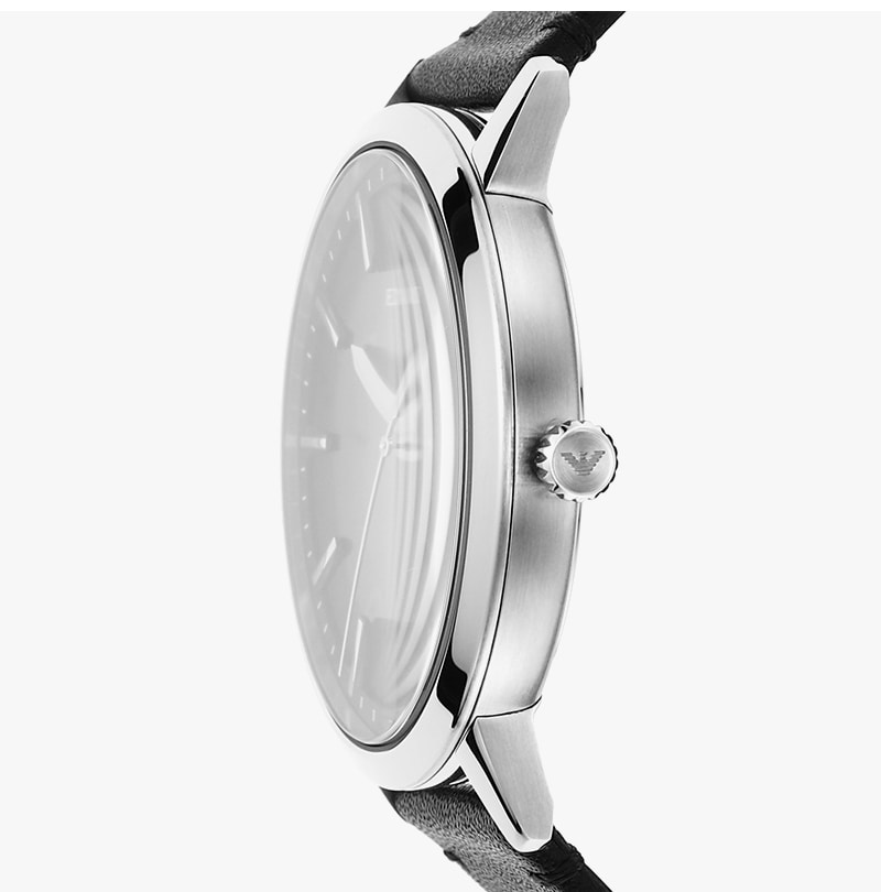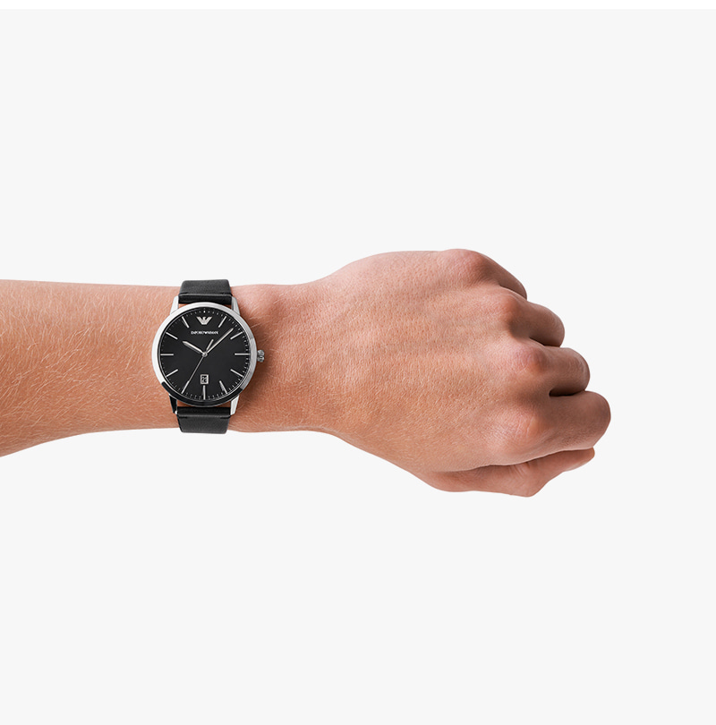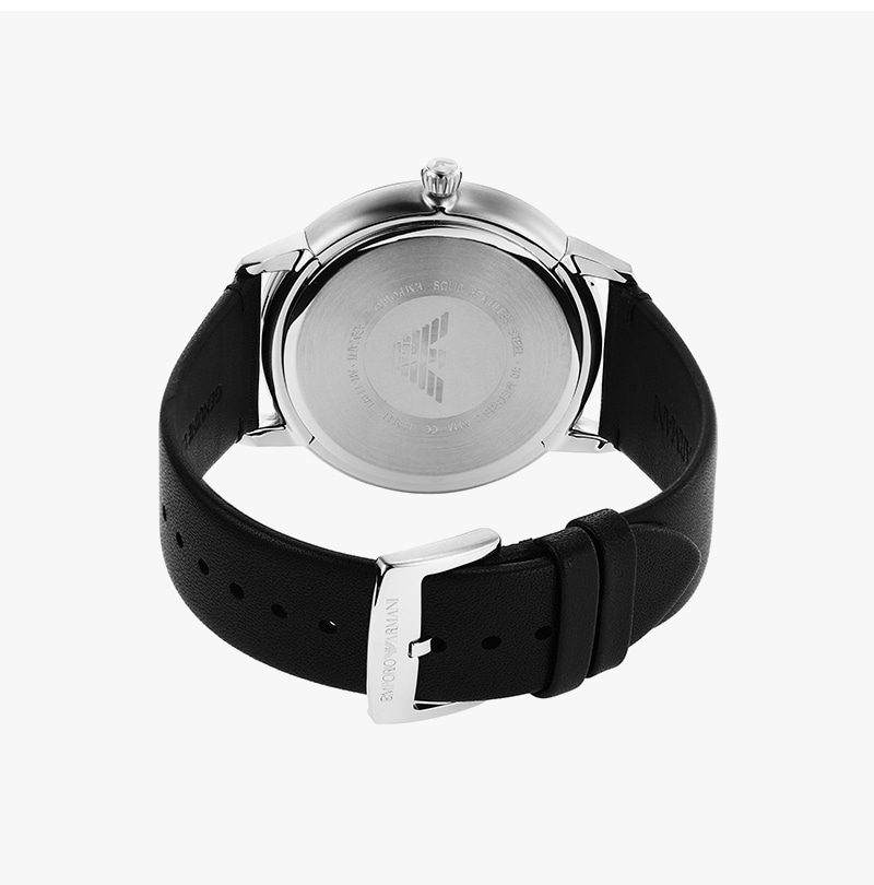 엠포리오 아르마니 루제로 43mm 가죽 시계 블랙 블랙