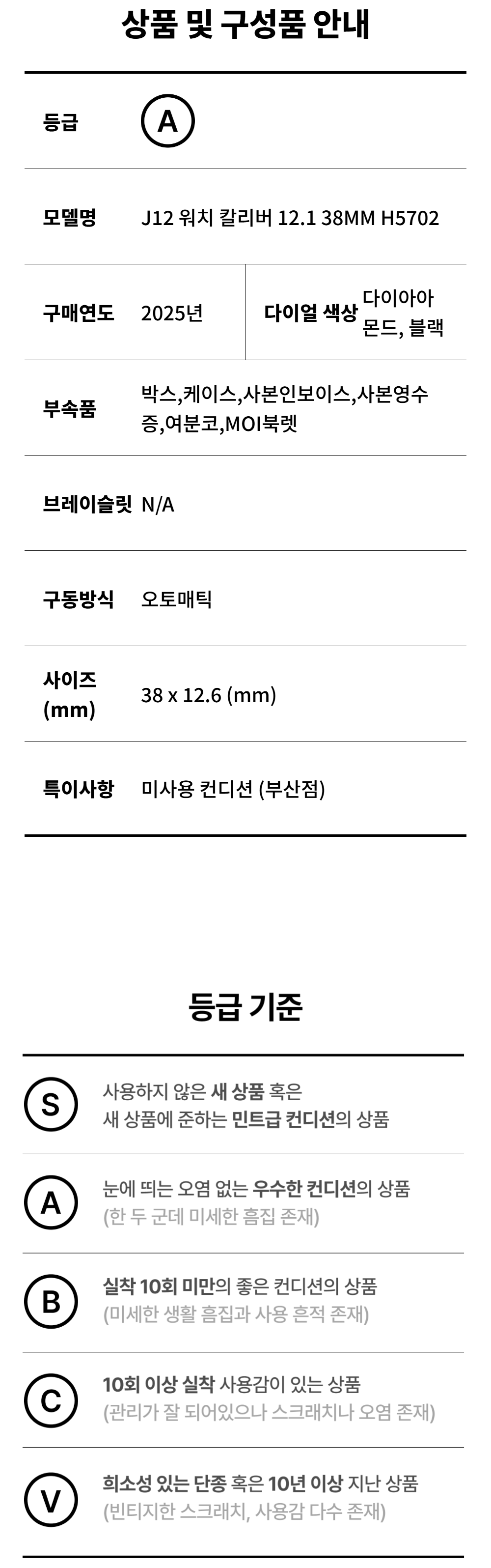 샤넬 J12 워치 칼리버 12.1 38MM H5702