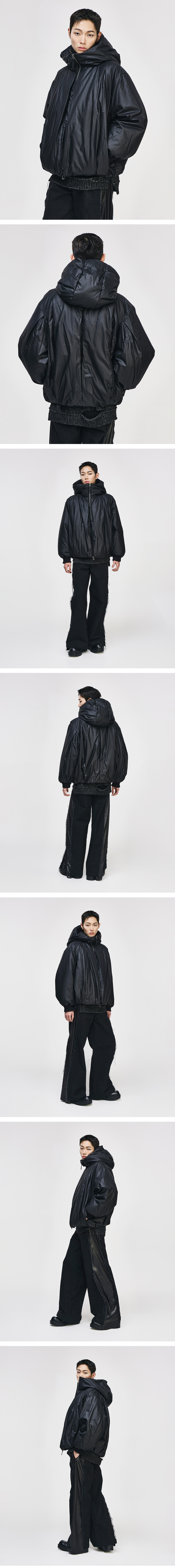 - SONGZIO HOMME 멀티 플리츠 후드 다운 점퍼 - 부드럽고 가벼운 신세틱 패브릭 - 볼륨감있는 입체적인 실루엣의 후드 다운 점퍼 디자인 - 2 WAYS ZIP-UP - 후드 입구 E STRING - 전면 2개의 슬릿 포켓과 2개의 웰트 포켓 구성 - 후면 네크 D링 밑단 E-STRING 구성 - 오버사이즈 코쿤 실루엣 FABRICATION MADE IN VIETNAM
