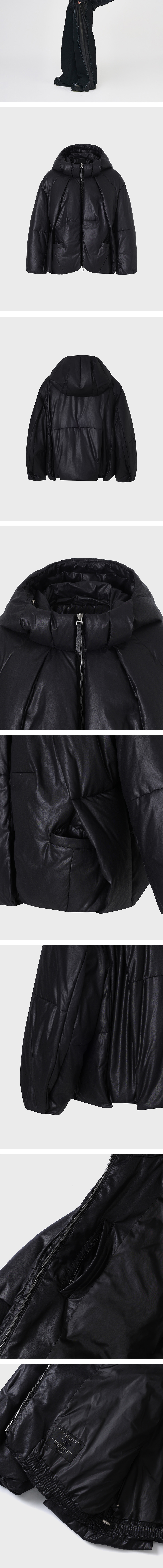 - SONGZIO HOMME 바이어스 볼륨 푸퍼 점퍼 - 내추럴한 터치감과 은은한 광택감의 코티드 신세틱 패브릭 - 입체적인 바이어스 컷팅 라인 디자인 - 후드,밑단 히든 E-STRING - 오버사이즈 코쿤 실루엣 FABRICATION MADE IN VIETNAM