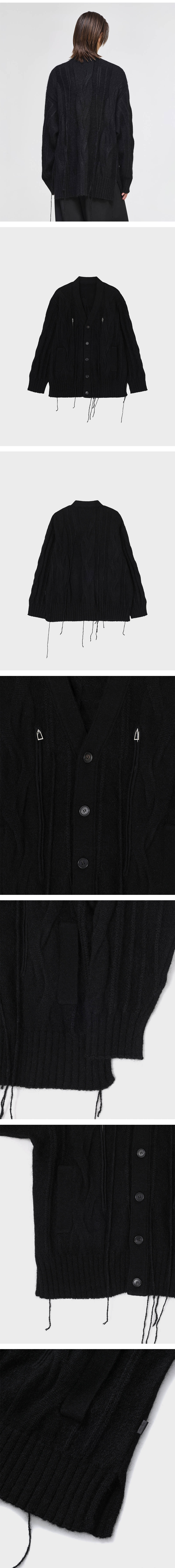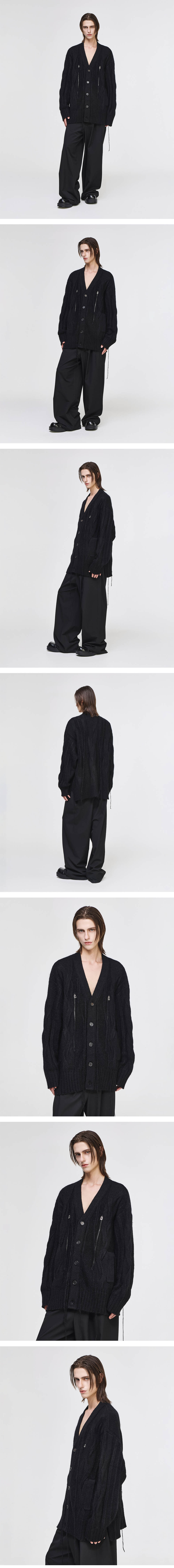 - SONGZIO 컬렉션 헤비 부클 슬릿 가디건 - 헤어리한 모헤어 원사 - 7GG 케이블 조직 - 전면 슬릿 지퍼 디테일 - 사이드 슬릿 디테일과 레더 라벨 포인트 - 오버 실루엣과 기장감의 실루엣 FABRICATION MADE IN CHINA