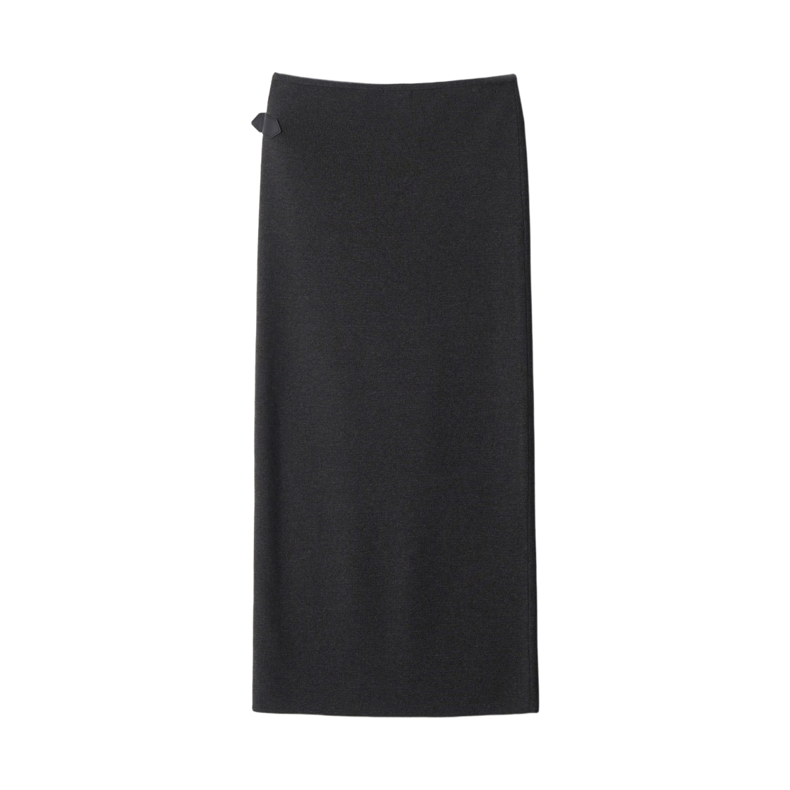 (W) 아비에무아 메리노 울 버클 디테일 니트 랩 스커트 차콜