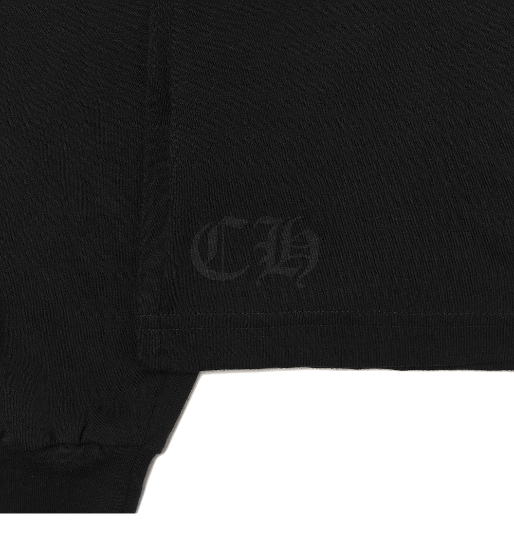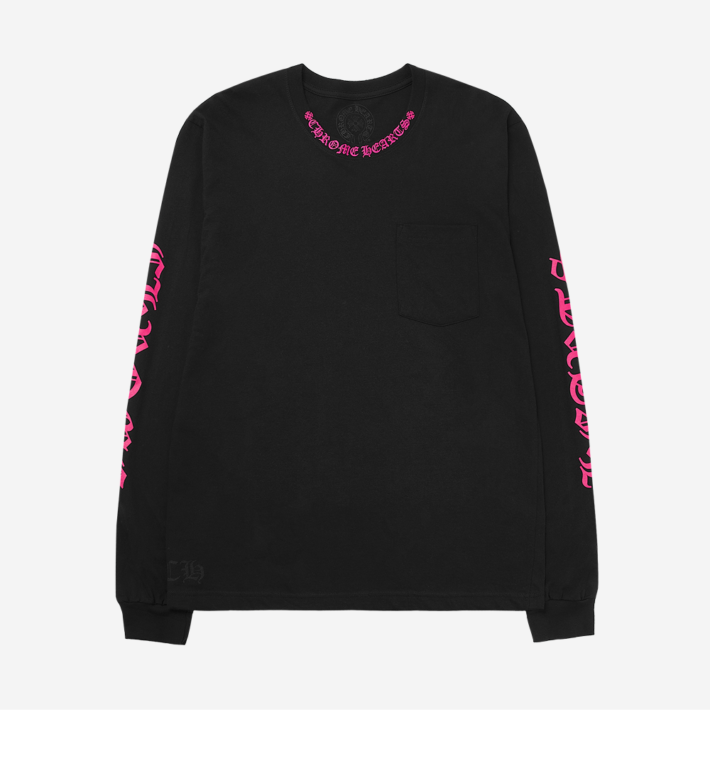 크롬하츠 핑크 넥 스크립트 로고 롱슬리브 포켓 크루 블랙