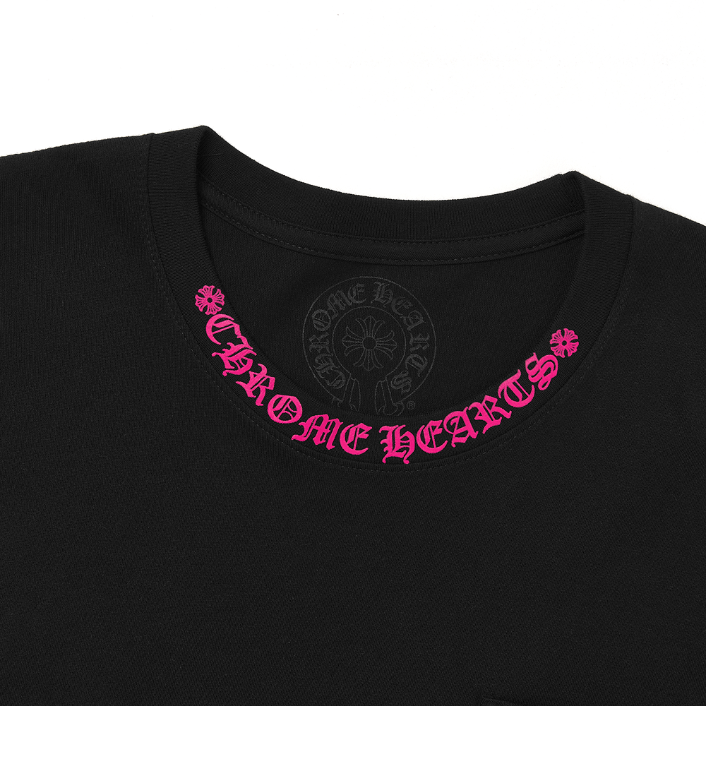 Chrome Hearts Pink Neck Script Logo Long Sleeve Pocket Crew Black