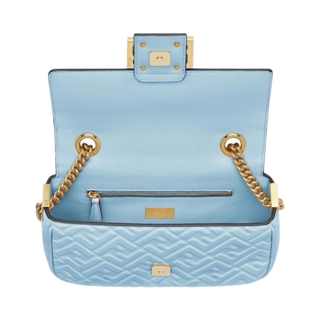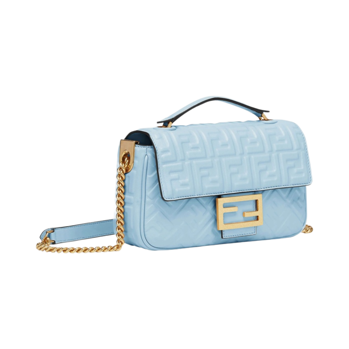 Fendi Baguette Chain Midi Leather Bag Light Blue