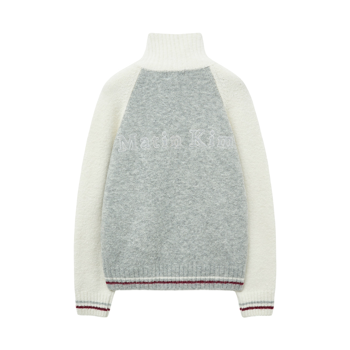 (W) Matin Kim High Neck Raglan Knit Zip Up Ivory