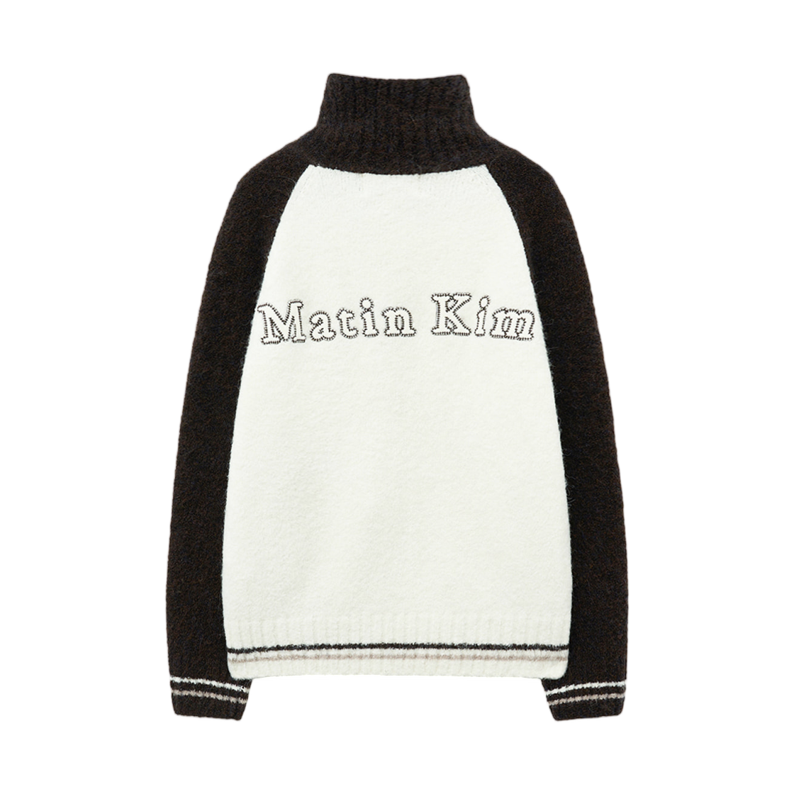 Matin Kim High Neck Raglan Knit Zip Up Dark Brown