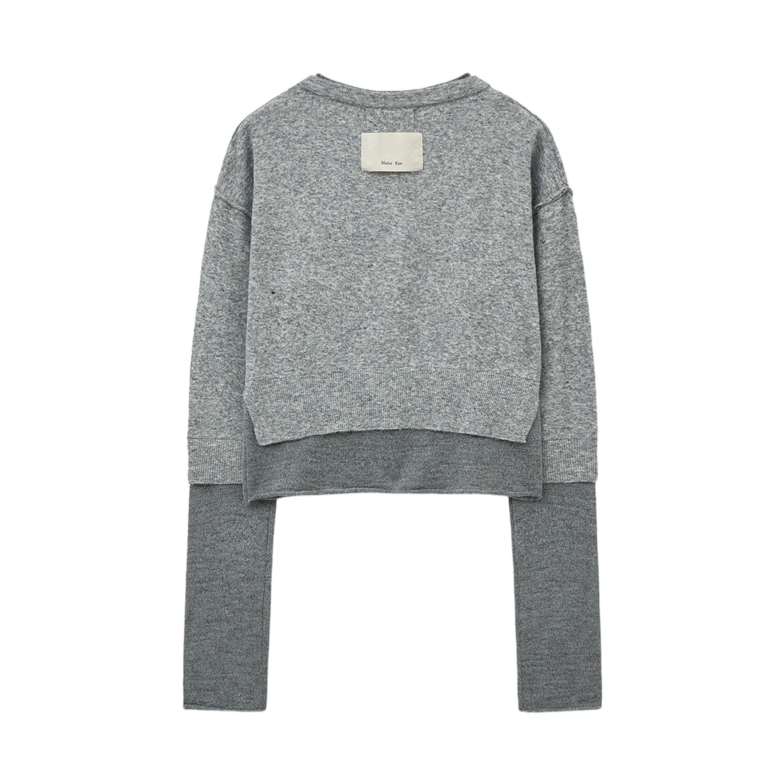(W) 마뗑킴 레이어드 텍스처 니트 가디건 그레이