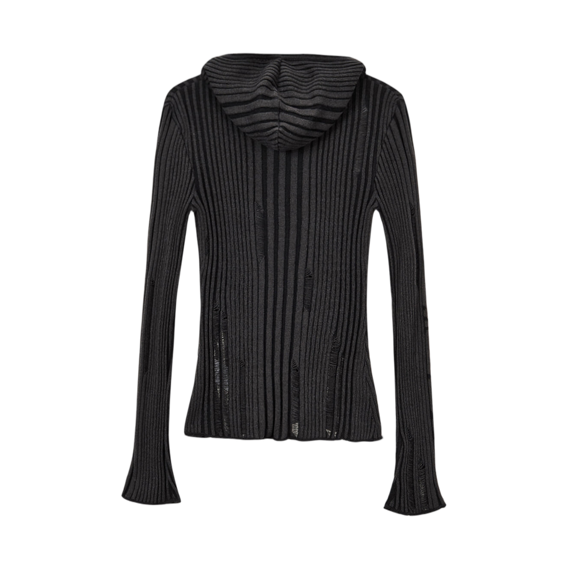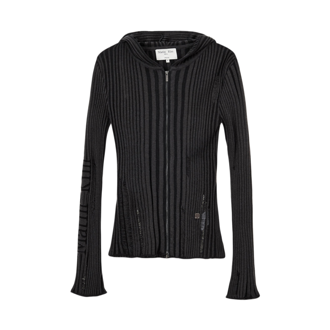 (W) Matin Kim Logo Point Damage Slim Hoody Cardigan Charcoal